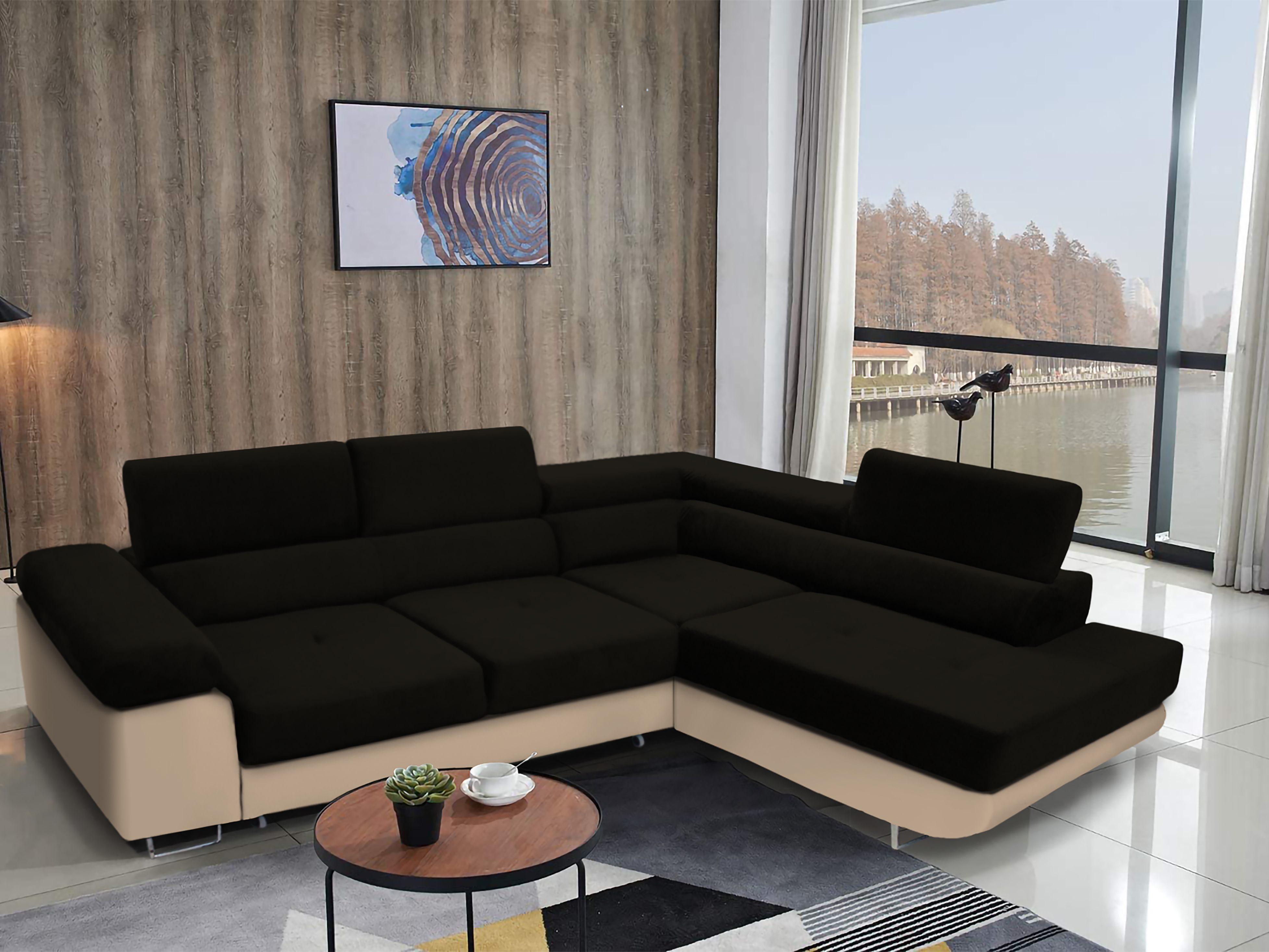 Rohová sedacia súprava Ascend L (čierna + béžová) (P)