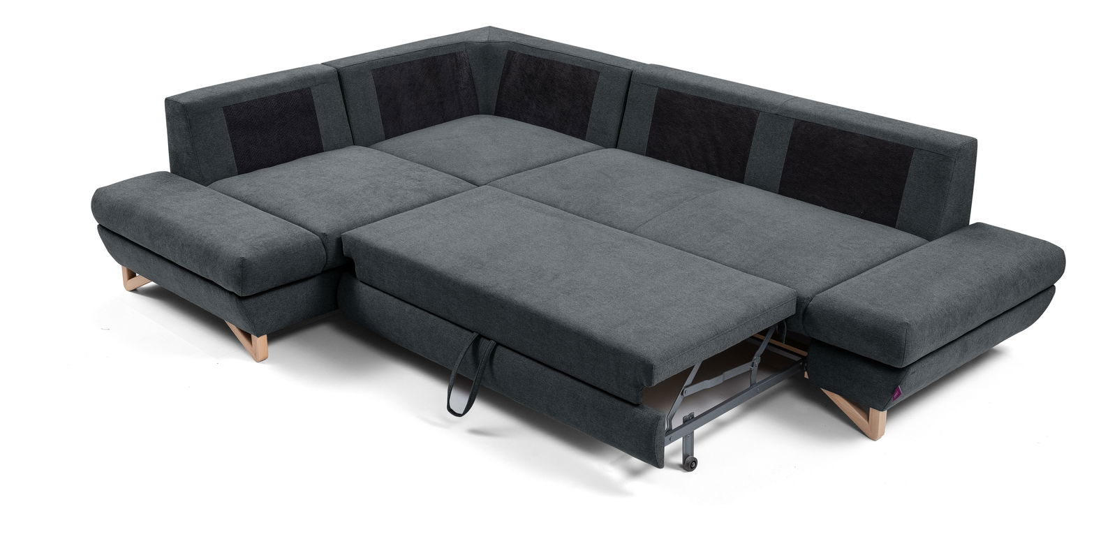 Táto rozkladacia rohová sedačka ponúka praktický priestor na spanie s rozmermi 138 x 211 cm, čo ocenia najmä návštevy alebo rodiny s potrebou občasného prenocovania. Výška sedenia 40 cm a hĺbka 61 cm zabezpečujú pohodlné usadenie pre všetky generácie, pričom nastaviteľné podrúčky umožňujú individuálne prispôsobenie pre maximálny komfort. Elegantné drevené nožičky vysoké 10 cm zároveň uľahčujú umývanie podlahy a prispievajú k ľahkosti celkového dizajnu.