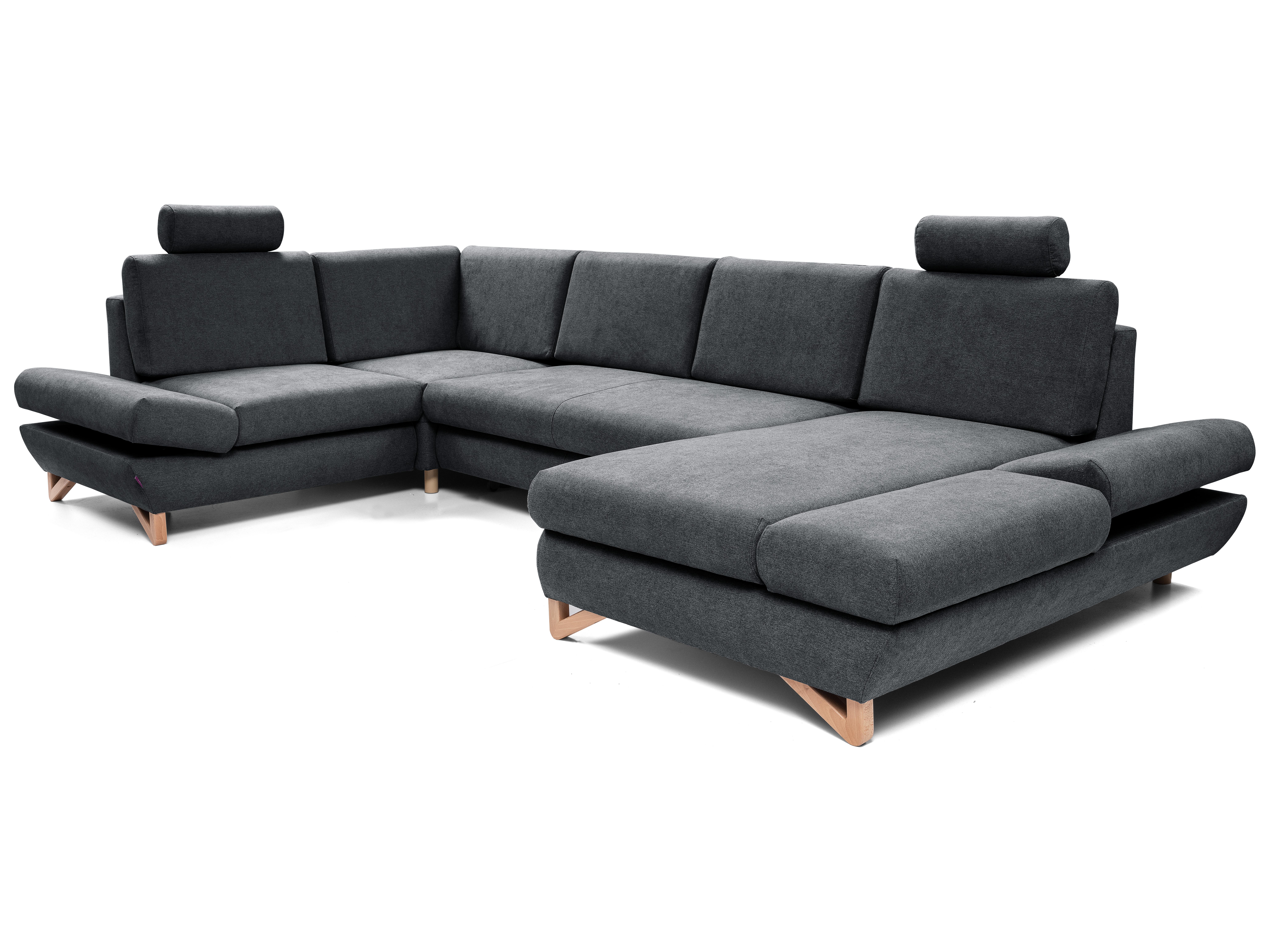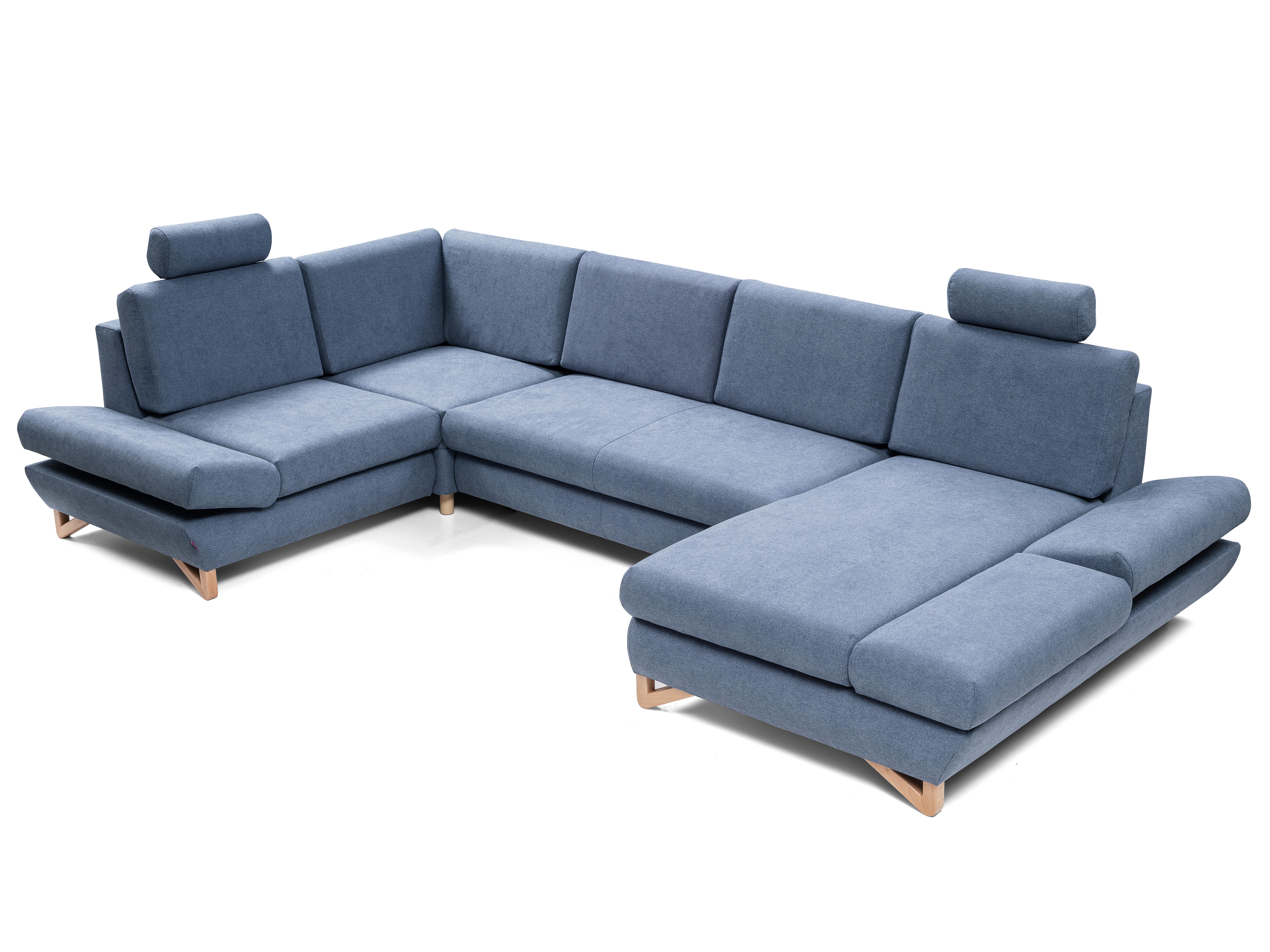 Rohová sedacia súprava Aveley IV v tvare U je vhodným doplnkom pre priestranné obývacie izby, kde oceníte jej komfort a praktickosť. Kombinácia pevnej konštrukcie z dreva a drevotriesky s kvalitným sedákom z PUR peny a pružín zabezpečuje dlhodobé pohodlie pri sedení aj odpočinku.