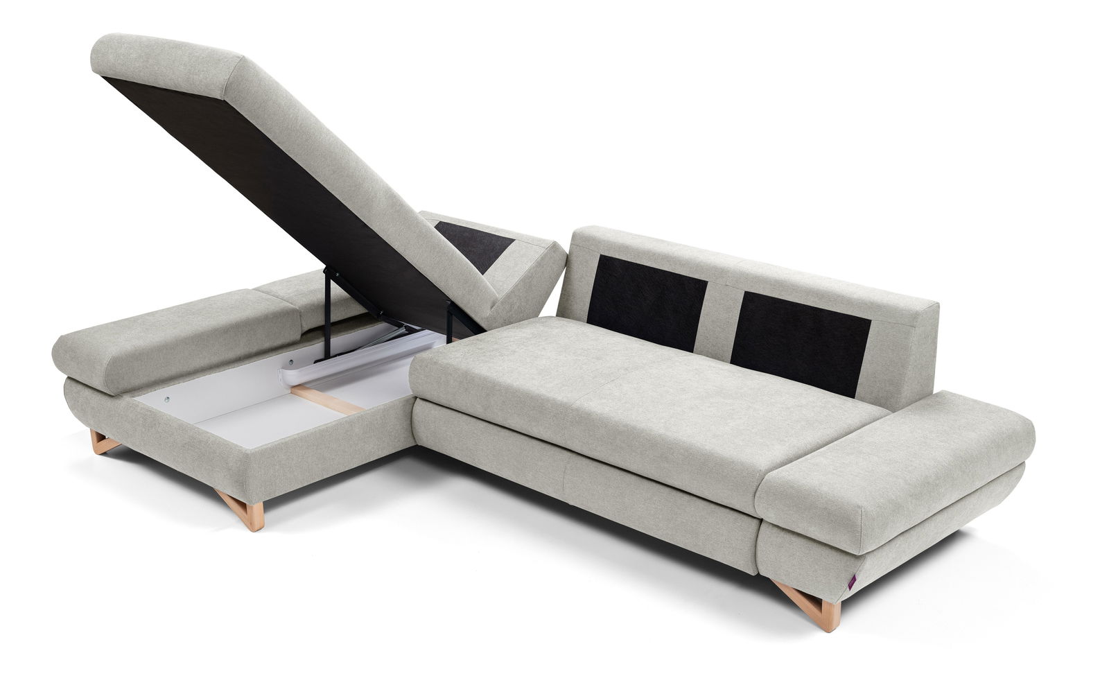 ZobraziťRohová sedacia súprava so záhlavníkom je ideálnym doplnkom do každej modernej obývačky. Konštrukcia je vyrobená z kvalitného dreva a drevotriesky, čo zaručuje dlhú životnosť a pevnosť. Sedák je pohodlný, vďaka kombinácii PUR peny a pružín. Súprava je rozkladacia, s rozmermi plochy na spanie 138 x 245 cm, čo poskytuje dostatok miesta pre pohodlné prespanie. Výška sedenia je 43,5 cm, hĺbka sedenia 58 cm a maximálna výška podrúčky je 57 cm. Súprava má aj praktický úložný priestor a zadnú časť potiahnutú rovnakou látkou ako zvyšok nábytku. Nastaviteľné podrúčky a drevené nožičky s výškou 10 cm dodávajú celkovému dizajnu eleganciu a funkčnosť. Typ rozkladania je riešený praktickým vozíkom, čo uľahčuje manipuláciu a zvyšuje pohodlie pri každodennom používaní.