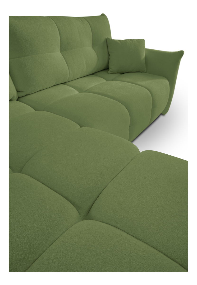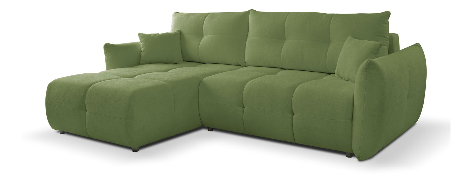 ZobraziťRohová sedačka s konštrukciou z borovicového dreva a drevotriesky ponúka kombináciu pevnosti a trvanlivosti. Sedák je vyrobený z PUR peny T-3042, ktorá zabezpečuje vysoký komfort sedenia. Sedačka je rozkladacia a poskytuje plochu na spanie o rozmeroch 145 x 212 cm, ideálnu pre návštevy alebo relax. Výška sedenia je 42 cm, hĺbka sedenia 60 cm a výška podrúčky 63 cm, čo prispieva k pohodlnému posedeniu. Úložný priestor s rozmermi 118,6 x 67 x 18,5 cm poskytuje dostatok miesta na odloženie posteľnej bielizne alebo iných vecí. Chrbát sedačky je potiahnutý rovnakou látkou, čím sa dosahuje jednotný vzhľad. Sedačka nemá nastaviteľné opierky hlavy ani podrúčky. Plastové nožičky s výškou 3,5 cm zabezpečujú stabilitu a jednoduchú údržbu. Typ rozkladania je DL automat a súčasťou sedačky sú aj dva malé vankúše pre ešte väčší komfort.