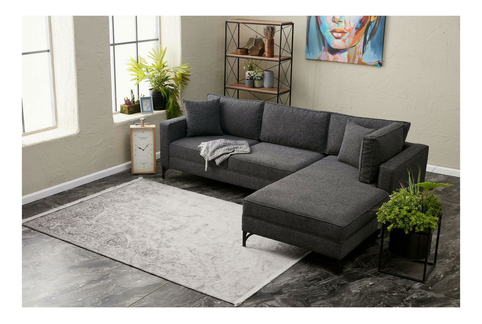 Rohová sedacia súprava Brenen (P) (antracit + čierna)