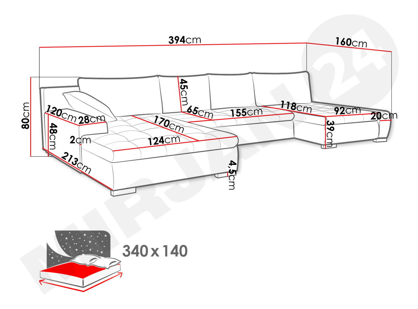 140x340 cm