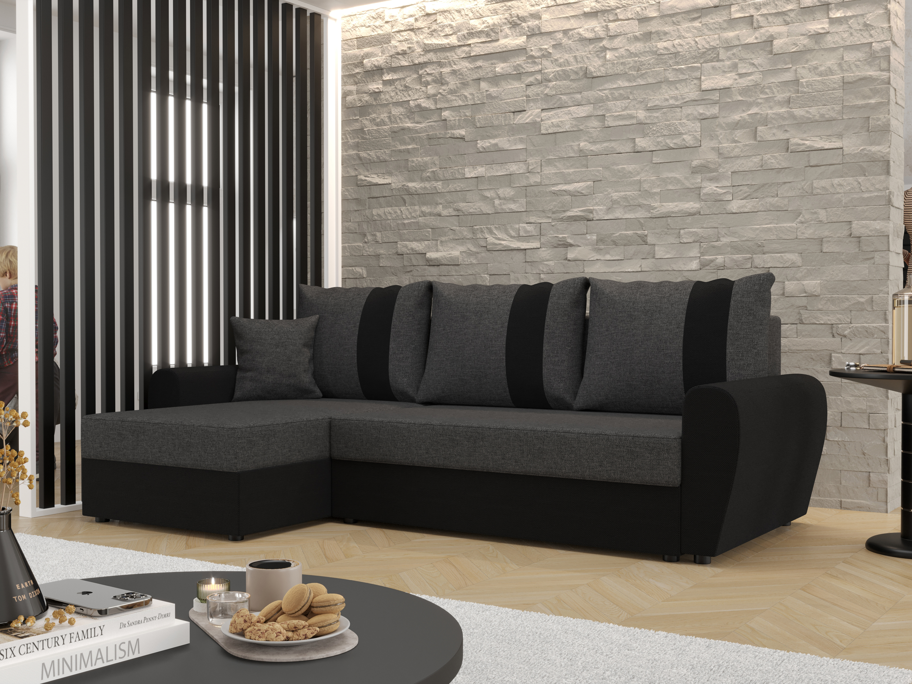Rohová sedacia súprava Daven L (sivá + čierna) (L)