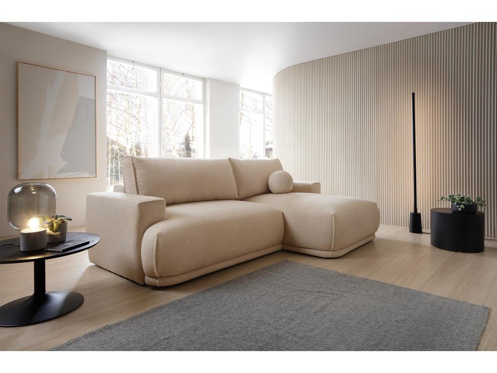 Rohová sedacia súprava Dita mini v kombinácii béžovej a čiernej farby predstavuje kúsok nábytku vhodný pre každú modernú obývaciu stenu alebo obývaciu zostavu. Jej tvar v tvare L s jemne zaoblenými líniami prináša do interiéru vizuálnu harmóniu a vytvára priestor pre rodinný relax či stretnutia s priateľmi. Model je čalúnený kvalitnou boucle látkou Teraz alebo nikdy, ktorá je príjemná na dotyk a vďaka technológii Animal-Friendly dobre odoláva oderu, treniu a žmolkovaniu, takže je vhodný aj pre domácnosti so zvieratami.