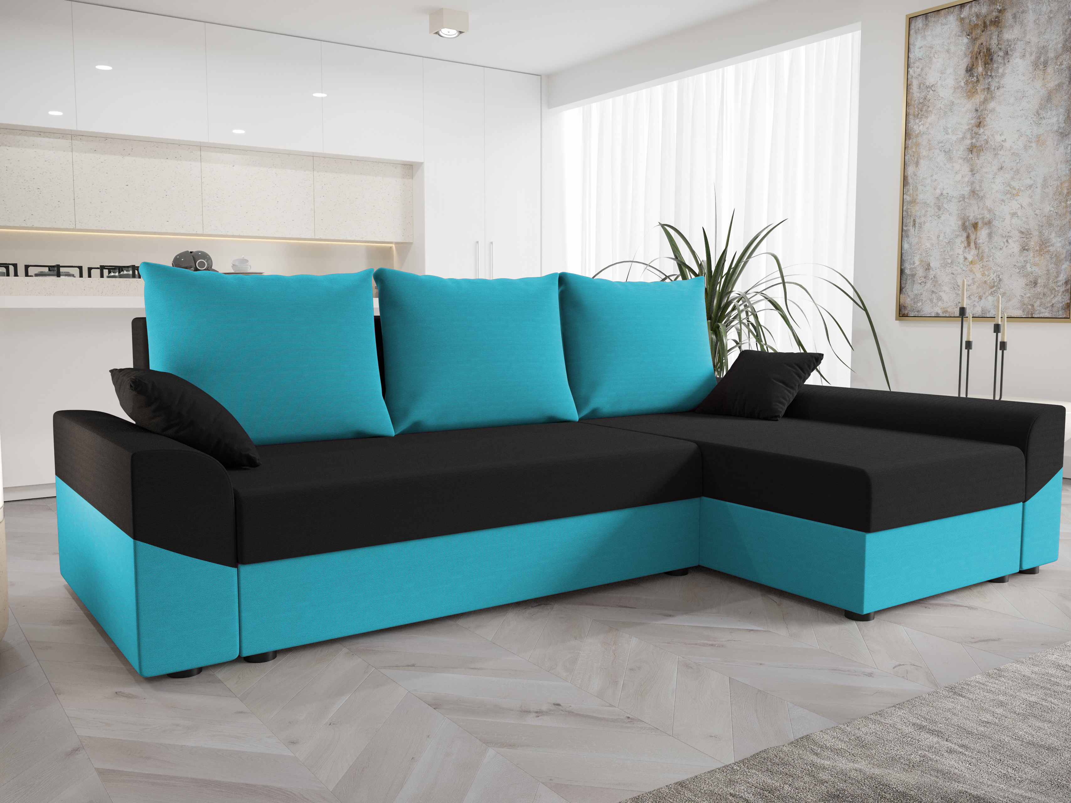 Rohová sedacia súprava Dusk L (tyrkysová + čierna) (P)