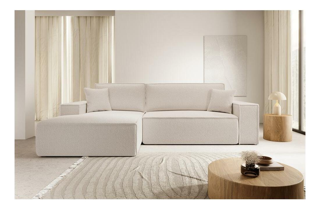 ZobraziťHľadáte štýlový nábytok do obývačky? Vyberte si rohovú rozkladaciu pohovku New New je minimalistického tvaru, ktorý dokonale zapadne do mnohých aranžmánov. Výplň sedadla tvorí mäkká polyuretánová pena a vlnité pružiny typu B, ktoré zaisťujú mimoriadny komfort používania. Nábytok má inteligentný mechanizmus rozkladania, ktorý uľahčuje premenu rohovej sedačky na posteľ s veľkou plochou. New je vybavená aj praktickou úložnou priehradkou, do ktorej môžete uložiť ďalšie lôžkoviny alebo iné textílie Podrobnosti o produkte: Nábytok v tvare L, ľavá rohová sedačka, výška operadla: 46 cm, výška podrúčky: 53 cm, dĺžka otomanu: 123. cm, montáž: samostatne stojaca, štýl: moderný, škandinávsky, nábytok čalúnený látkou Abriamo 3 v béžovej farbe, Abriamo je mäkká, na dotyk príjemná buklová látka. Odolné voči treniu, oderu a odlupovaniu.