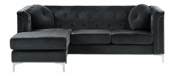 S touto modulárnou rohovou pohovkou, ktorá umožňuje umiestnenie ležadla buď na ľavú alebo pravú stranu, môžete zmeniť usporiadanie obývacej izby v priebehu niekoľkých minút. Vďaka zamatovému čalúneniu a prešívanému operadlu vnesie eleganciu do akéhokoľvek moderne zariadeného interiéru. Pohovka s dvomi okrúhlymi vankúšmi, ozdobným kovovým lemovaním a striebornými kovovými nohami vytvorí pocit luxusu v každom modernom priestore. Dodatočné vankúše majú snímateľné poťahy pre jednoduchšie čistenie.