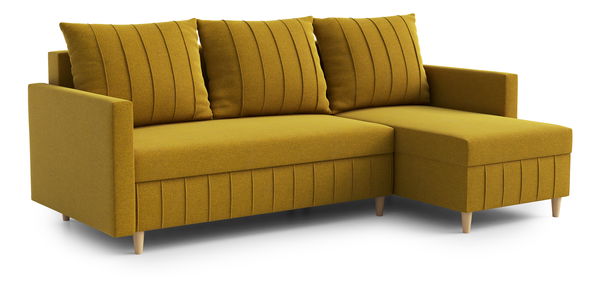 ZobraziťElegantná a príjemná, naša pravá rohová sedačka Filippo (P) (horčicová) ponúka ideálne miesto na relaxáciu. S výškou 98 cm, šírkou 224 cm a hĺbkou 146 cm je táto sedačka vhodná aj do menších priestorov. Jej solidná konštrukcia z dreva a nábytkovej dosky zaručuje dlhú životnosť. S výplňou z bonellových pružín a peny T 30 máte zaručený optimálny komfort sedenia. Sedacia súprava je vybavená aj priestranným úložným priestorom a rozkladacou spánkovou plochou s rozmermi 200x140 cm. Naturálne drevené nožičky vytvárajú elegantný vzhľad a subtilné rozmery opierok na ruky zabezpečujú pohodlné položenie rúk. Táto sedacia súprava je kombináciou štýlu a funkčnosti, ktorá vám prinesie maximálnu pohodu a spokojnosť.