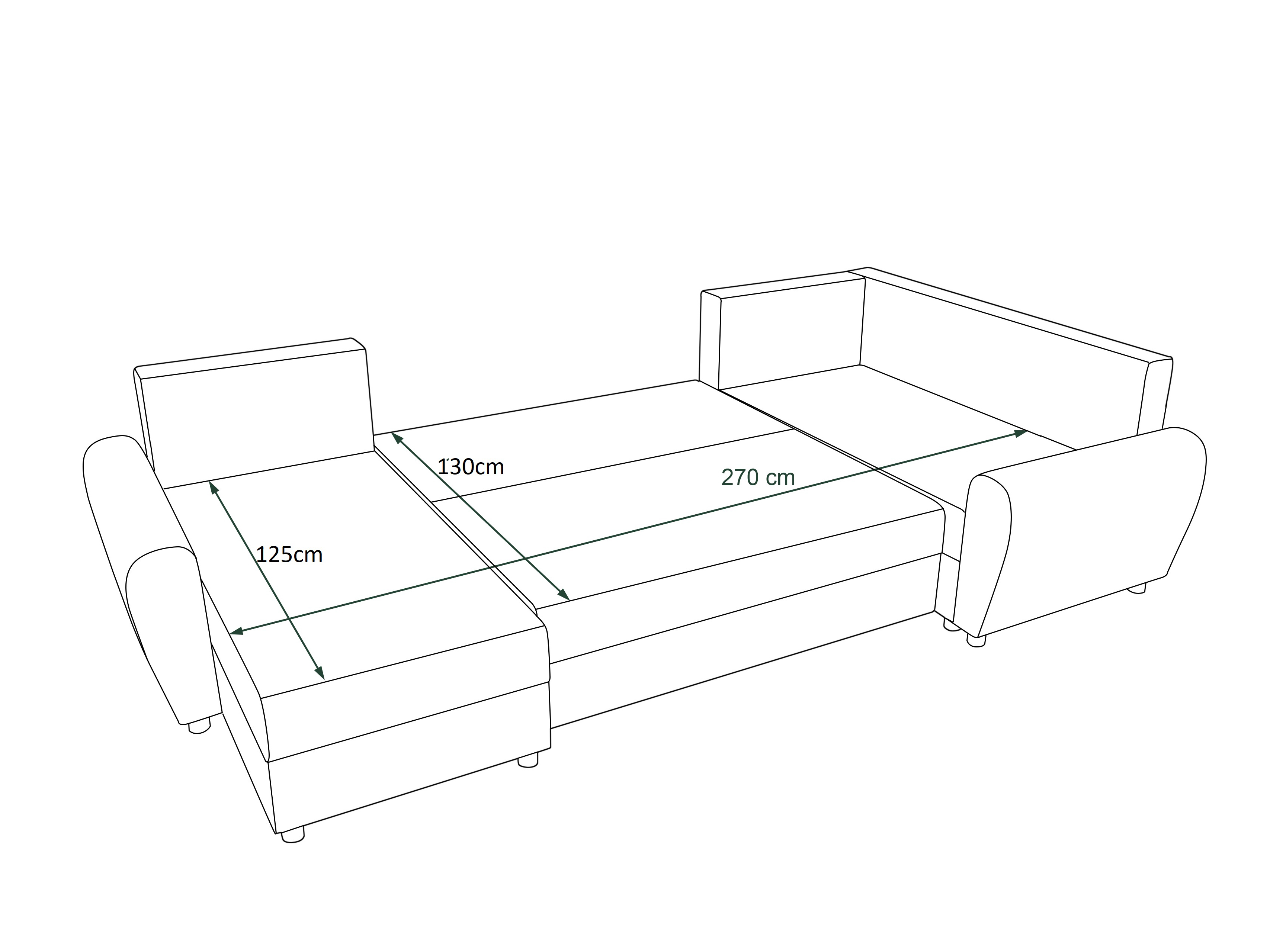 - Rozkladacia sedačka umožňuje jednoduché premenenie na pohodlné lôžko s rozmermi 130 x 270 cm, ideálne pre nečakaných hostí alebo večerný relax. Viac informácií o rozkladacích sedačkách vhodných na každodenné spanie nájdete v ponuke sedacích súprav.