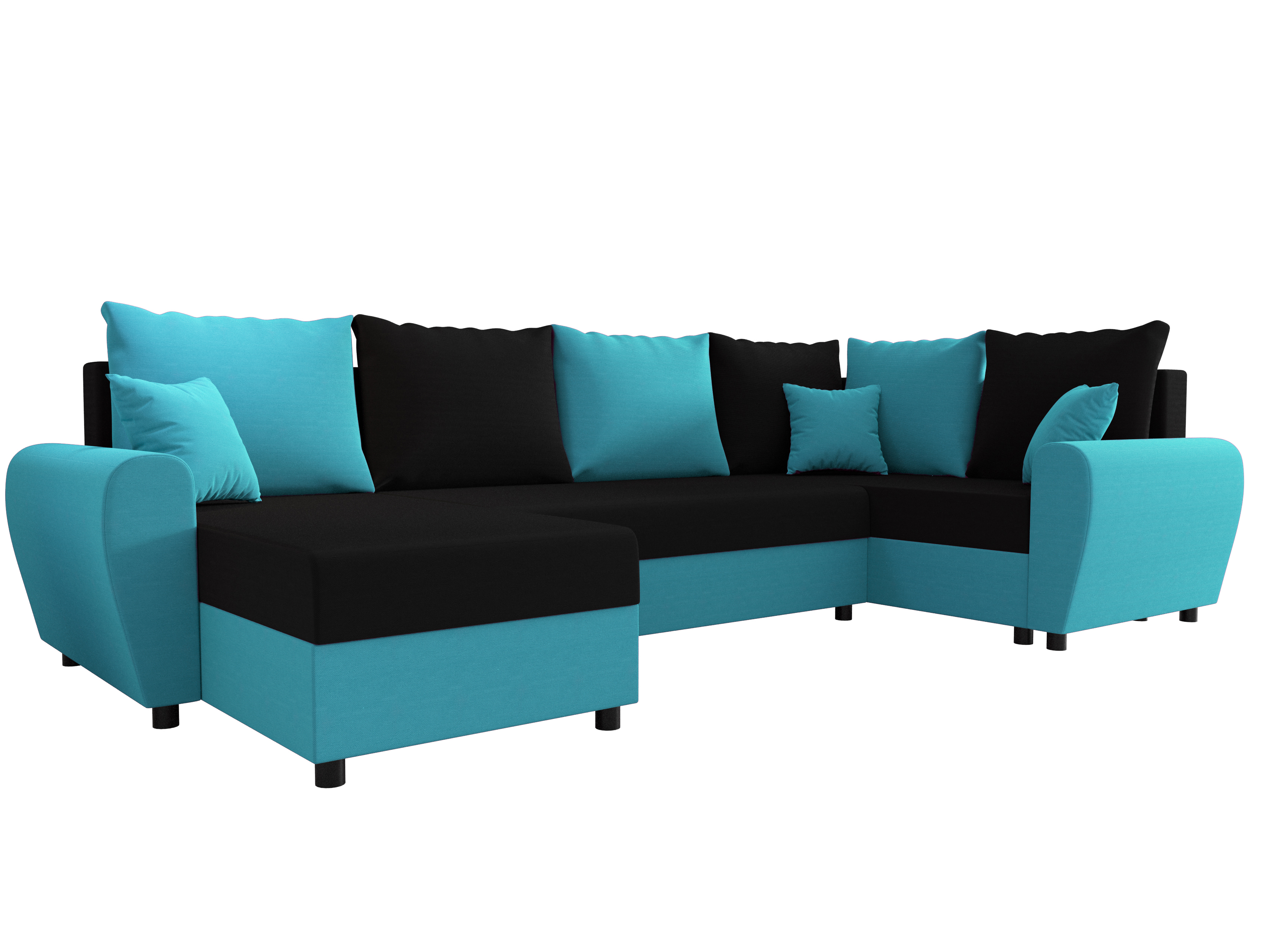 Rohová sedačka v tvare U Fleur Long (tyrkysová + čierna) (P)