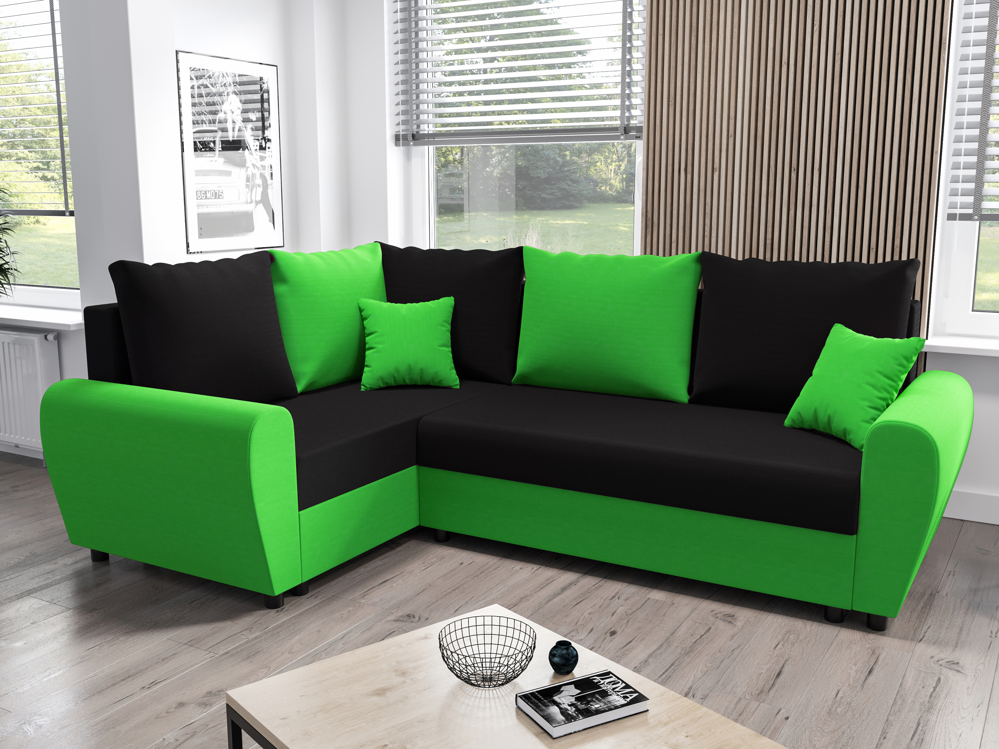 Rohová sedacia súprava Fleur Plus (zelená + čierna) (L)