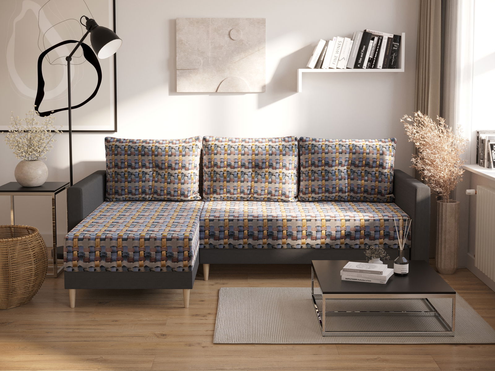 Rohová sedacia súprava Glimmer L (čierna + viacfarebné) (L)