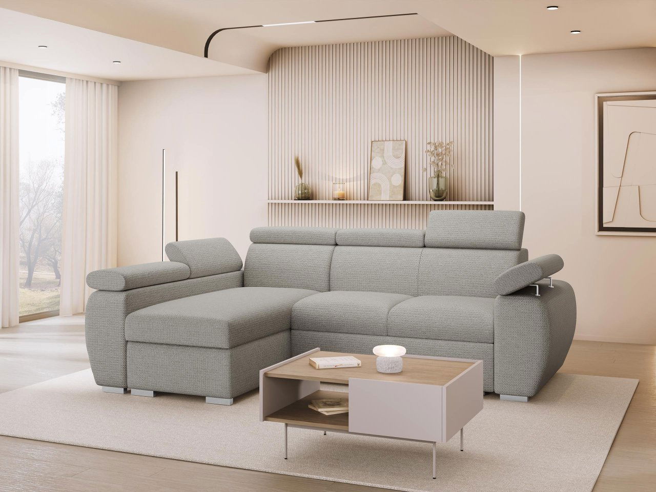 Rohová sedačka je ideálnou voľbou pre tých, ktorí hľadajú pohodlie a štýl. Vaše pohodlie pri relaxácii v obývačke je našou prioritou. Preto sme pre Vás pripravili rohovú sedačku Giza Mini s úložným priestorom, ktorej súčasťou sú nastaviteľné opierky hlavy pre vyšší komfort. Nastavenia každej z nich je možné prispôsobiť zvlášť, čím sa výrazne zvýši štandard sedenia alebo relaxácie. Pomocou rozkladacieho systému automat, ktorý uľahčuje rozloženie, pripravíte za okamih miesto na spanie s rozmermi optimálnymi pre dve osoby. Rozmery: dĺžka: 255 cm šírka: 170 cm výška: 85 - 100 cm plocha na spanie: 200 x 130 cm Rohová strana: ľavá alebo pravá Prevedenie: rám: 6 cm hrubé borovicové drevo + 16 mm hrubá nábytková doska + 16 mm hrubá MDF doska operadlo: T30/38 pena sedadlo: T30/38 pena + vlnová pružina typu B opierky hlavy: T23/15 pena rozkladacia, automat na ľahké rozloženie, má funkciu spánku úložný priestor, kovové chrómové nohy (už predvŕtané do nábytku) nastavenie opierky hlavy, čalúnené operadlo pevne pripevnené, celočalúnená sedačka vhodná aj do priestoru Rozmery úložného priestoru: dĺžka: 165 cm šírka: 62 cm výška: 23 cm Záruka: 24 mesiacov