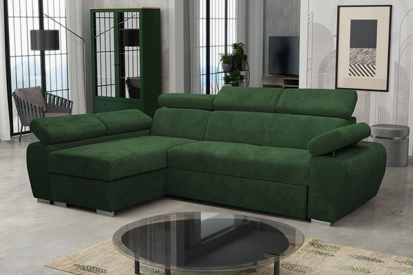 ZobraziťRohová sedačka je ideálnou voľbou pre tých, ktorí hľadajú pohodlie a štýl. Módna rohová pohovka Giza Mini v tvare písmena L dopĺňa zariadenie obývacej izby. Postavená k stene alebo do jej úplného stredu podčiarkuje elegantný dizajn miestnosti. Ďalšou prednosťou nábytku je manšestrové čalúnenie. Vďaka symetrickým drážkam vnáša rohová pohovka do usporiadania útulnosť a teplo. Takto želaný efekt umocňujú farby čalúnenia starostlivo zladené s nábytkom. Okrem vizuálnych kvalít ponúka Giza Mini aj zvýšenú funkčnosť. Nábytok vybavený nastaviteľnými opierkami hlavy poskytuje pohodlné podmienky na odpočinok pre celú rodinu. Okrem toho táto moderná rohová pohovka ponúka aj funkciu spania a pod jedným zo sedadiel sa nachádza priestranný úložný priestor na lôžkoviny. Rozmery: dĺžka: 255 cm, šírka: 170 cm, výška: 85 - 98 cm, plocha na spanie: 200 x 130 cm, rozmery kontajnera: dĺžka: 165 cm, šírka: 62 cm, výška: 23 cm Rohová strana: ľavá alebo pravá Prevedenie: rám: 6 cm hrubé borovicové drevo + 16 mm hrubá nábytková doska + 16 mm hrubá MDF doska operadlo: T30/38 pena sedadlo: T30/38 pena + vlnová pružina typu B opierky hlavy: T23/15 pena rohová sedačka, automatická rozkladacia jednotka, typ DELFIN, má funkciu spania, nádoba na lôžkoviny, kovové chrómové nohy (už predvŕtané do nábytku) nastaviteľné opierky hlavy, čalúnené operadlo napevno, samostatne stojaca rohová pohovka (operadlo čalúnené látkou) Záruka: 24 mesiacov