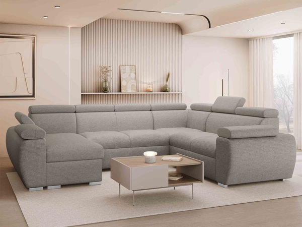 Rohová sedacia súprava Giza U v svetlosivej farbe je riešením pre moderné obývacie izby, ktoré vyžadujú kombináciu komfortu, funkčnosti a štýlového dizajnu. Jej rozmerná konštrukcia v tvare písmena U ponúka dostatok miesta na sedenie pre celú rodinu alebo priateľov, čím vytvára prostredie na spoločné chvíle a voľnú komunikáciu. Vďaka nastaviteľným opierkam hlavy si každý nájde svoju optimálnu polohu na relaxáciu, zatiaľ čo kvalitné čalúnenie a pružinový systém zabezpečujú dlhodobý komfort a odolnosť.