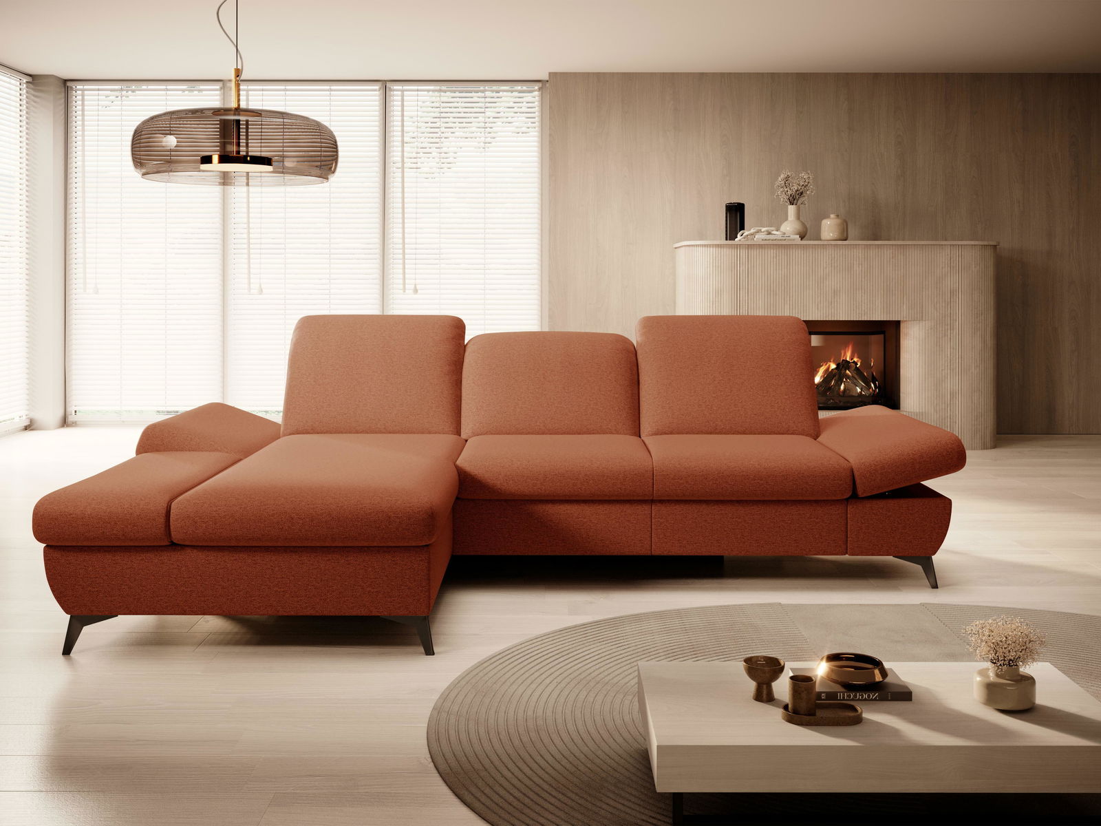 Rohová sedacia súprava Harpie (hrdzavá) (L)
