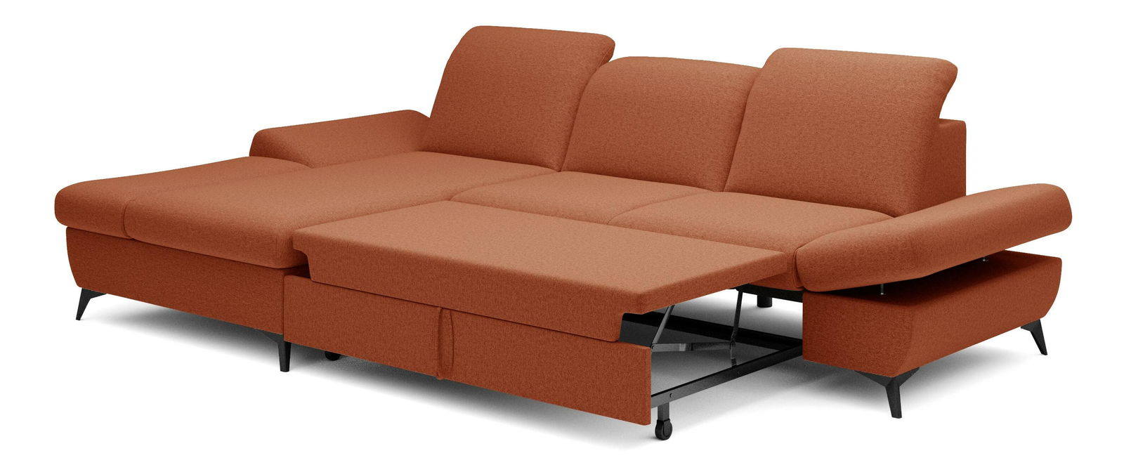 ZobraziťRohová sedačka je vyrobená z kvalitnej konštrukcie z dreva a drevotriesky, čo zaručuje pevnosť a trvanlivosť. Sedák je z PUR peny a pružín, ktoré poskytujú maximálne pohodlie pri sedení. Sedačka je rozkladacia a ponúka plochu na spanie s rozmermi 128 x 245 cm, ideálnu pre hostí alebo na príležitostné prespanie. Výška sedenia je 42 cm, hĺbka sedenia 60 cm a výška podrúčky sa dá nastaviť od 42 cm do 57 cm, čo umožňuje individuálne nastavenie podľa potrieb používateľa. Sedačka disponuje úložným priestorom, kde môžete uschovať posteľnú bielizeň alebo iné veci. Chrbát sedačky je potiahnutý rovnakou látkou, čím sa dosahuje jednotný a elegantný vzhľad. Nastaviteľné opierky hlavy a podrúčky zvyšujú komfort sedenia. Nožičky sú kovové s výškou 10 cm, čo dodáva sedačke moderný vzhľad a stabilitu. Typ rozkladania je vozík, čo umožňuje jednoduché a rýchle rozkladanie sedačky.