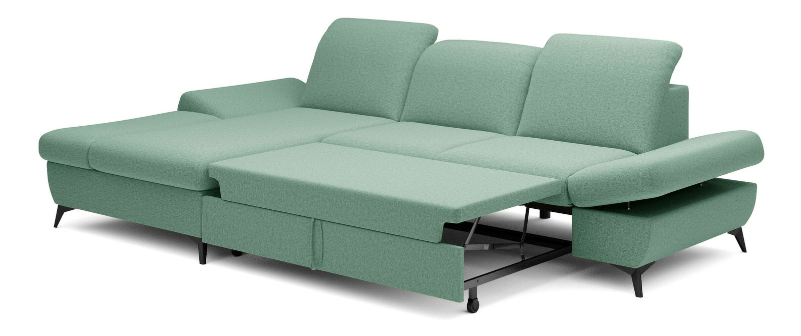 ZobraziťRohová sedačka je vyrobená z kvalitnej konštrukcie z dreva a drevotriesky, čo zaručuje pevnosť a trvanlivosť. Sedák je z PUR peny a pružín, ktoré poskytujú maximálne pohodlie pri sedení. Sedačka je rozkladacia a ponúka plochu na spanie s rozmermi 128 x 245 cm, ideálnu pre hostí alebo na príležitostné prespanie. Výška sedenia je 42 cm, hĺbka sedenia 60 cm a výška podrúčky sa dá nastaviť od 42 cm do 57 cm, čo umožňuje individuálne nastavenie podľa potrieb používateľa. Sedačka disponuje úložným priestorom, kde môžete uschovať posteľnú bielizeň alebo iné veci. Chrbát sedačky je potiahnutý rovnakou látkou, čím sa dosahuje jednotný a elegantný vzhľad. Nastaviteľné opierky hlavy a podrúčky zvyšujú komfort sedenia. Nožičky sú kovové s výškou 10 cm, čo dodáva sedačke moderný vzhľad a stabilitu. Typ rozkladania je vozík, čo umožňuje jednoduché a rýchle rozkladanie sedačky.