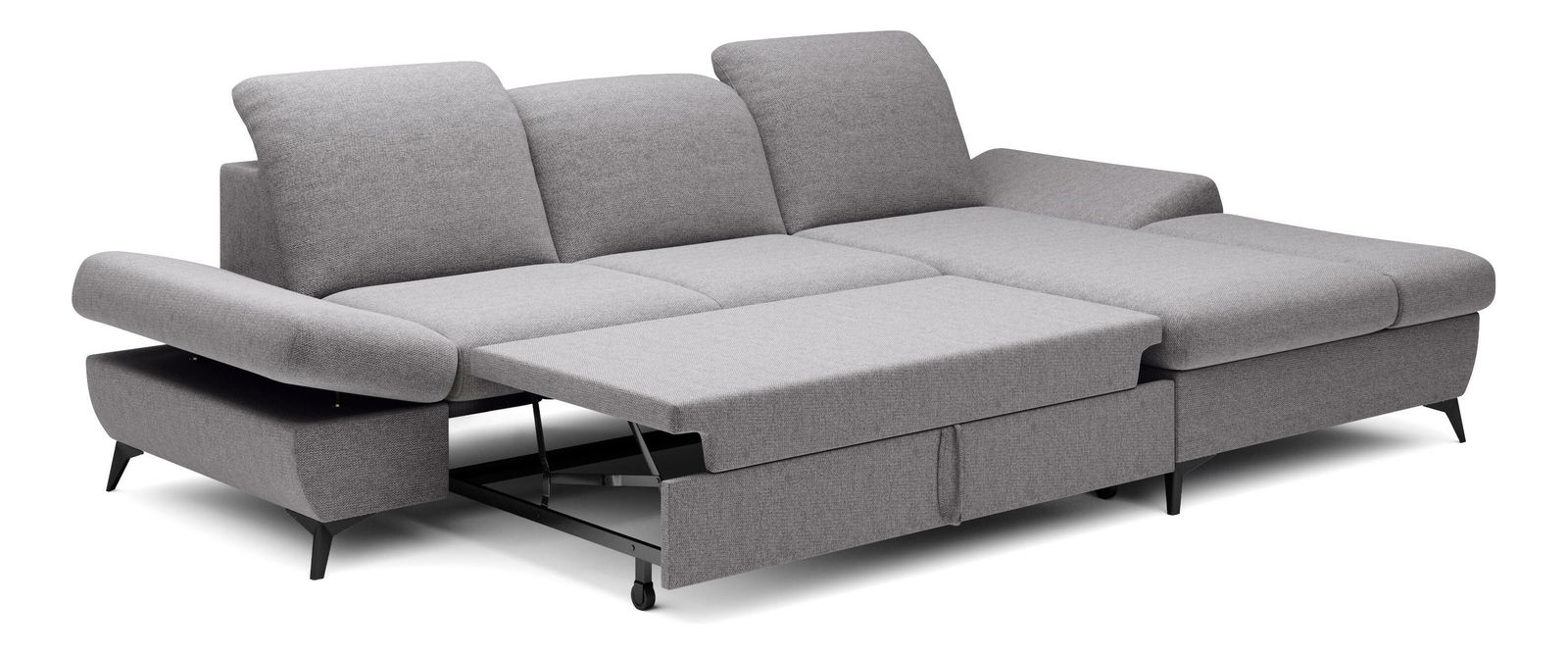 ZobraziťRohová sedačka je vyrobená z kvalitnej konštrukcie z dreva a drevotriesky, čo zaručuje pevnosť a trvanlivosť. Sedák je z PUR peny a pružín, ktoré poskytujú maximálne pohodlie pri sedení. Sedačka je rozkladacia a ponúka plochu na spanie s rozmermi 128 x 245 cm, ideálnu pre hostí alebo na príležitostné prespanie. Výška sedenia je 42 cm, hĺbka sedenia 60 cm a výška podrúčky sa dá nastaviť od 42 cm do 57 cm, čo umožňuje individuálne nastavenie podľa potrieb používateľa. Sedačka disponuje úložným priestorom, kde môžete uschovať posteľnú bielizeň alebo iné veci. Chrbát sedačky je potiahnutý rovnakou látkou, čím sa dosahuje jednotný a elegantný vzhľad. Nastaviteľné opierky hlavy a podrúčky zvyšujú komfort sedenia. Nožičky sú kovové s výškou 10 cm, čo dodáva sedačke moderný vzhľad a stabilitu. Typ rozkladania je vozík, čo umožňuje jednoduché a rýchle rozkladanie sedačky.