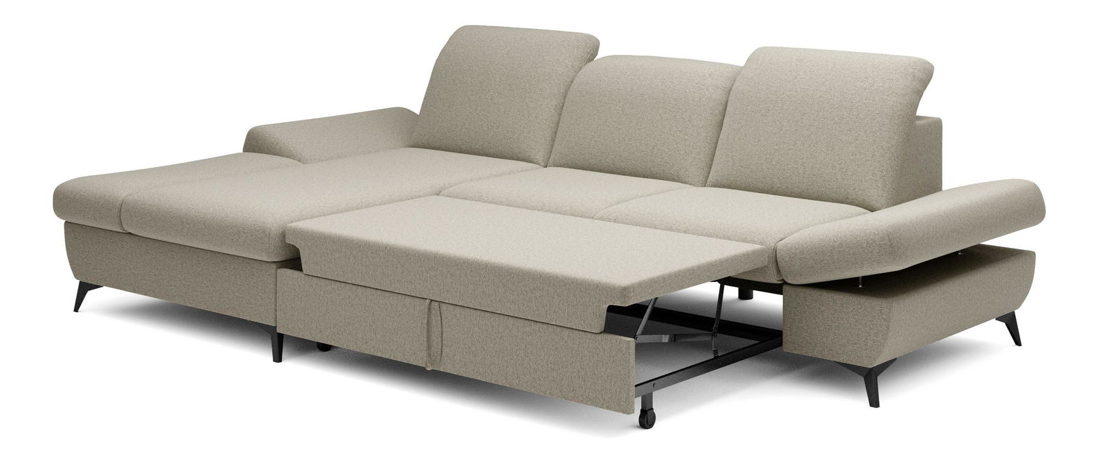 ZobraziťRohová sedačka je vyrobená z kvalitnej konštrukcie z dreva a drevotriesky, čo zaručuje pevnosť a trvanlivosť. Sedák je z PUR peny a pružín, ktoré poskytujú maximálne pohodlie pri sedení. Sedačka je rozkladacia a ponúka plochu na spanie s rozmermi 128 x 245 cm, ideálnu pre hostí alebo na príležitostné prespanie. Výška sedenia je 42 cm, hĺbka sedenia 60 cm a výška podrúčky sa dá nastaviť od 42 cm do 57 cm, čo umožňuje individuálne nastavenie podľa potrieb používateľa. Sedačka disponuje úložným priestorom, kde môžete uschovať posteľnú bielizeň alebo iné veci. Chrbát sedačky je potiahnutý rovnakou látkou, čím sa dosahuje jednotný a elegantný vzhľad. Nastaviteľné opierky hlavy a podrúčky zvyšujú komfort sedenia. Nožičky sú kovové s výškou 10 cm, čo dodáva sedačke moderný vzhľad a stabilitu. Typ rozkladania je vozík, čo umožňuje jednoduché a rýchle rozkladanie sedačky.