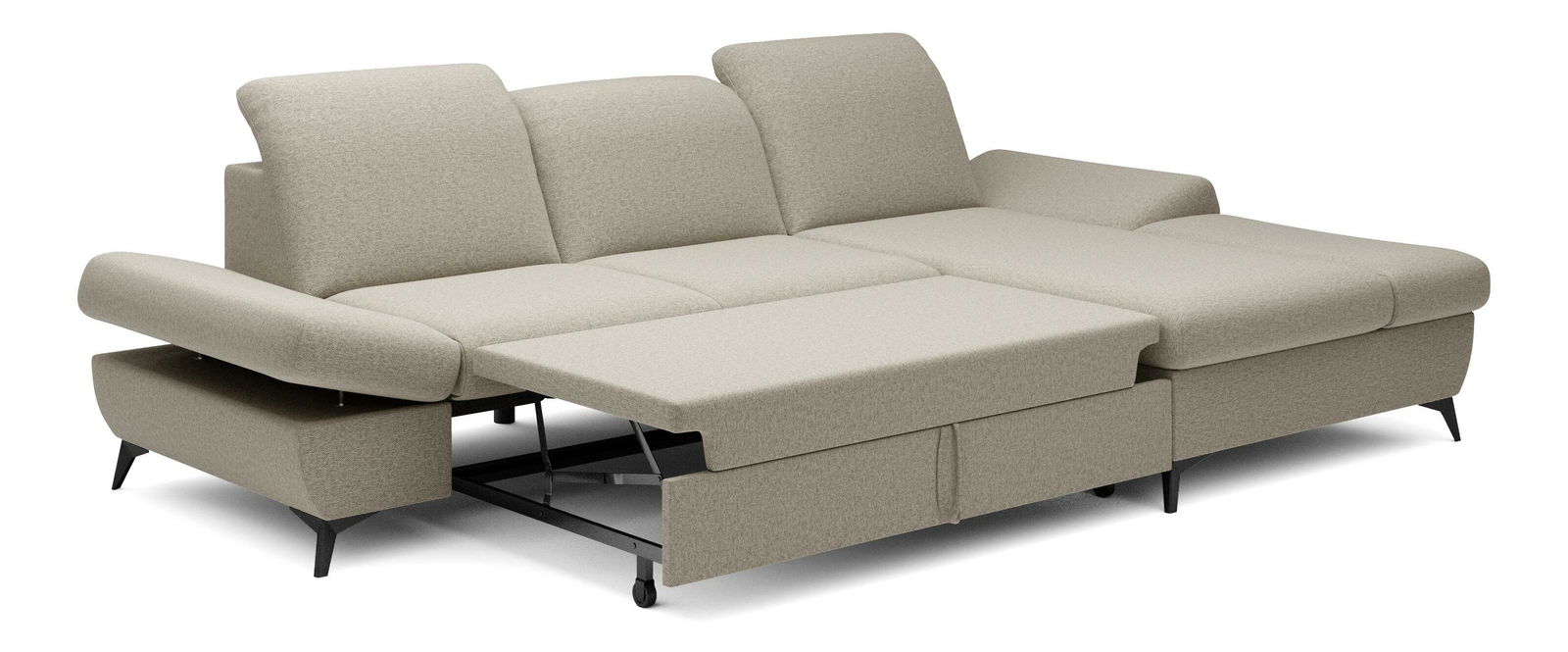 ZobraziťRohová sedačka je vyrobená z kvalitnej konštrukcie z dreva a drevotriesky, čo zaručuje pevnosť a trvanlivosť. Sedák je z PUR peny a pružín, ktoré poskytujú maximálne pohodlie pri sedení. Sedačka je rozkladacia a ponúka plochu na spanie s rozmermi 128 x 245 cm, ideálnu pre hostí alebo na príležitostné prespanie. Výška sedenia je 42 cm, hĺbka sedenia 60 cm a výška podrúčky sa dá nastaviť od 42 cm do 57 cm, čo umožňuje individuálne nastavenie podľa potrieb používateľa. Sedačka disponuje úložným priestorom, kde môžete uschovať posteľnú bielizeň alebo iné veci. Chrbát sedačky je potiahnutý rovnakou látkou, čím sa dosahuje jednotný a elegantný vzhľad. Nastaviteľné opierky hlavy a podrúčky zvyšujú komfort sedenia. Nožičky sú kovové s výškou 10 cm, čo dodáva sedačke moderný vzhľad a stabilitu. Typ rozkladania je vozík, čo umožňuje jednoduché a rýchle rozkladanie sedačky.