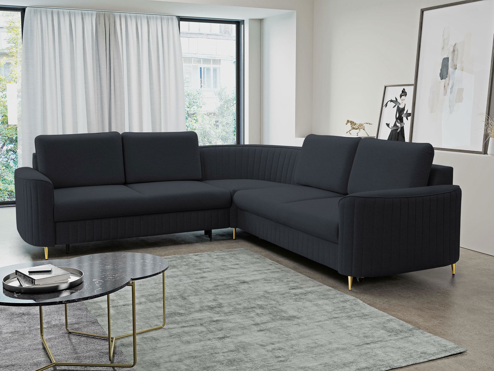 Rohová sedacia súprava Loreen (tmavomodrá) (P)