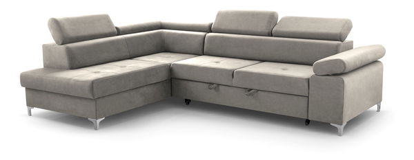 Rohová sedacia súprava - Madeira (béžová) - je moderná sedacia súprava v tvare "L" s rámom z masívneho dreva a drevotriesky. Ponúka pohodlné sedenie vďaka bonellovej pružine a pene T 30. Opierky sú vyrobené z peny, silikónu a sú doplnené poťahovými lištami, čo zabezpečuje maximálny komfort. Sedacia súprava je vybavená rozkladacím mechanizmom typu "delfín" a úložným priestorom. Plocha na spanie má rozmery 127x203 cm, čo poskytuje dostatočný priestor pre pohodlný odpočinok. Zadná strana sedačky je potiahnutá rovnakou látkou ako predná, čo umožňuje jej umiestnenie do stredu miestnosti. Sedacia súprava je vybavená regulovateľnými opierkami, vrátane opierok hlavy a lakťov, čo zvyšuje komfort pri sedení. Výška sedačky s zdvihnutou lakťovou opierkou je 76 cm a s opierkou hlavy 95 cm.