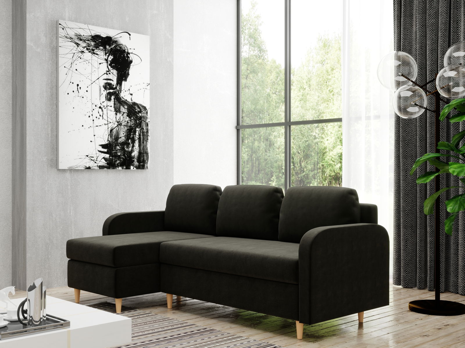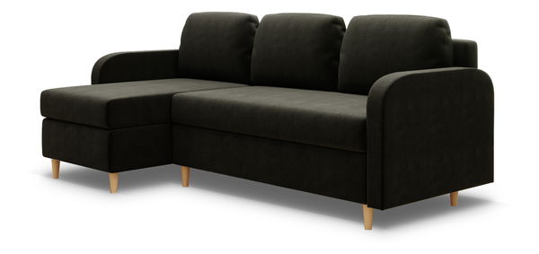 ZobraziťRohová sedacia súprava Marty (L) (sivočierna) je elegantným kúskom nábytku pre obývaciu izbu. Sedačka má robustný rám z dreva a 18mm nábytkovej dosky, vyplnenie z bonellových pružín a 3 cm peny T 30 v sedadle a operadle, čo zaručuje maximálny komfort. Nožičky zo dreva sú natreté naturálnou farbou a majú výšku 10 cm, dodávajúc subtilný a stabilný dotyk. Sedačka má praktickú hĺbku sedenia 50 cm s poduškami (alebo 80 cm bez nich) a rozmery opierok na ruky 55x9x90 cm, čo poskytuje dostatok priestoru pre pohodlie. Integrovaný klzákový mechanizmus umožňuje jednoduché rozkladanie do spánkovej plochy veľkosti 200x140 cm. Dodatočné vlastnosti zahŕňajú úložný priestor v bielej farbe a tri priložené podušky, čo zvyšuje ich funkčnosť a estetickú hodnotu. Čalúnená zadná strana umožňuje umiestnenie sedačky aj do priestoru bez steny, pričom zachováva jej elegantný vzhľad zo všetkých uhlov.