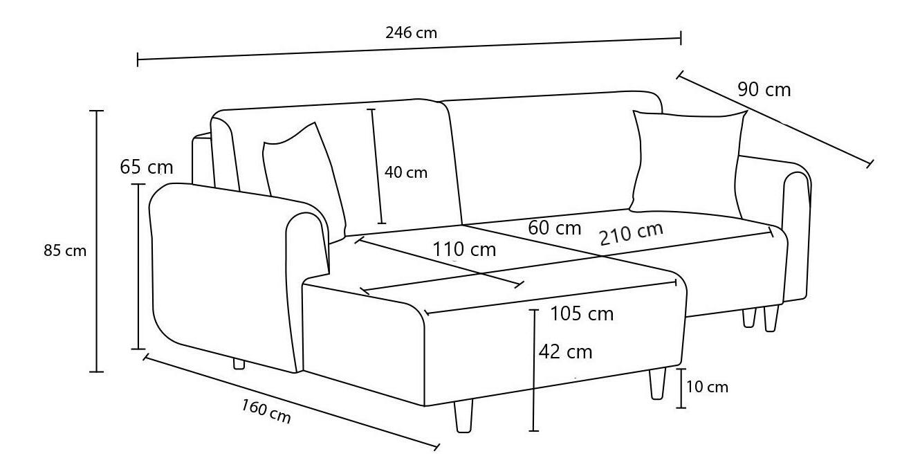 Šírka: 246 cm Výška: 85 cm Hĺbka: 160 cm