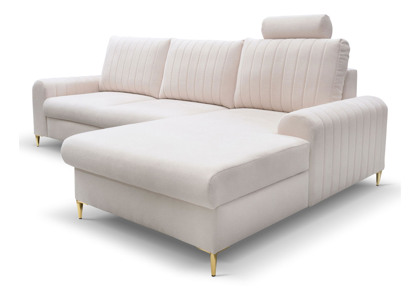 ZobraziťRohová sedacia súprava s konštrukciou z dreva a drevotriesky ponúka pevnosť a odolnosť. Sedák je vyrobený z PUR peny a pružín, čo zaručuje pohodlné sedenie. Súprava je rozkladacia s plochou na spanie 140 x 212 cm. Výška sedenia je 41 cm, hĺbka sedenia 50 cm a výška podrúčky 54 cm. Sedačka má úložný priestor a chrbát potiahnutý rovnakou látkou, čo zabezpečuje jednotný vzhľad. Opierky hlavy sú samostatným kusom. Kovové nožičky s výškou 10 cm poskytujú stabilitu. Typ rozkladania je vozík, čo umožňuje jednoduché rozkladanie.