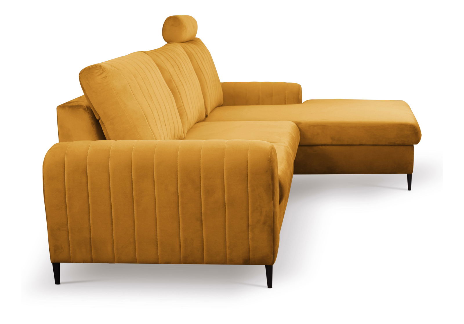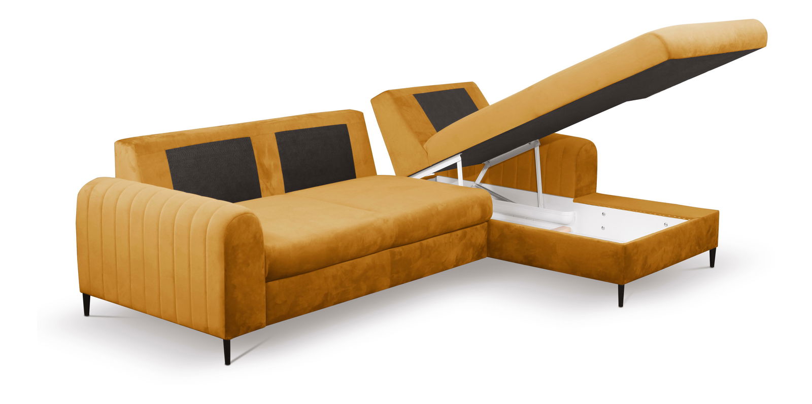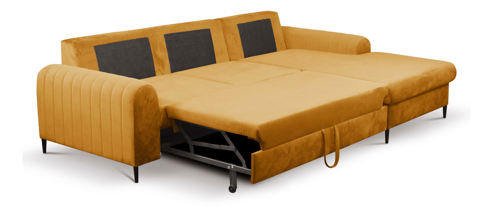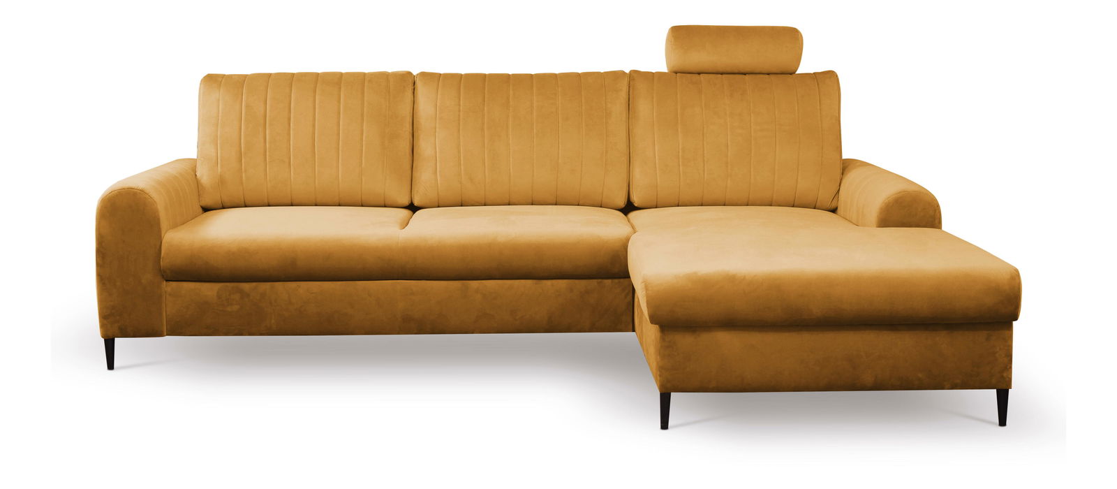 ZobraziťRohová sedacia súprava s konštrukciou z dreva a drevotriesky ponúka pevnosť a odolnosť. Sedák je vyrobený z PUR peny a pružín, čo zaručuje pohodlné sedenie. Súprava je rozkladacia s plochou na spanie 140 x 212 cm. Výška sedenia je 41 cm, hĺbka sedenia 50 cm a výška podrúčky 54 cm. Sedačka má úložný priestor a chrbát potiahnutý rovnakou látkou, čo zabezpečuje jednotný vzhľad. Opierky hlavy sú samostatným kusom. Kovové nožičky s výškou 10 cm poskytujú stabilitu. Typ rozkladania je vozík, čo umožňuje jednoduché rozkladanie.