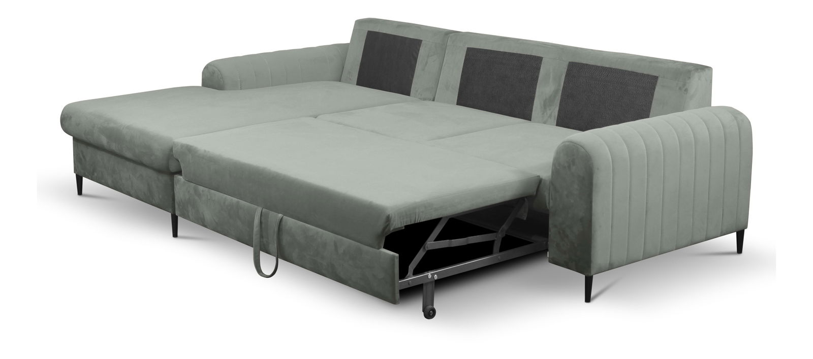ZobraziťRohová sedacia súprava s konštrukciou z dreva a drevotriesky ponúka pevnosť a odolnosť. Sedák je vyrobený z PUR peny a pružín, čo zaručuje pohodlné sedenie. Súprava je rozkladacia s plochou na spanie 140 x 212 cm. Výška sedenia je 41 cm, hĺbka sedenia 50 cm a výška podrúčky 54 cm. Sedačka má úložný priestor a chrbát potiahnutý rovnakou látkou, čo zabezpečuje jednotný vzhľad. Opierky hlavy sú samostatným kusom. Kovové nožičky s výškou 10 cm poskytujú stabilitu. Typ rozkladania je vozík, čo umožňuje jednoduché rozkladanie.