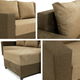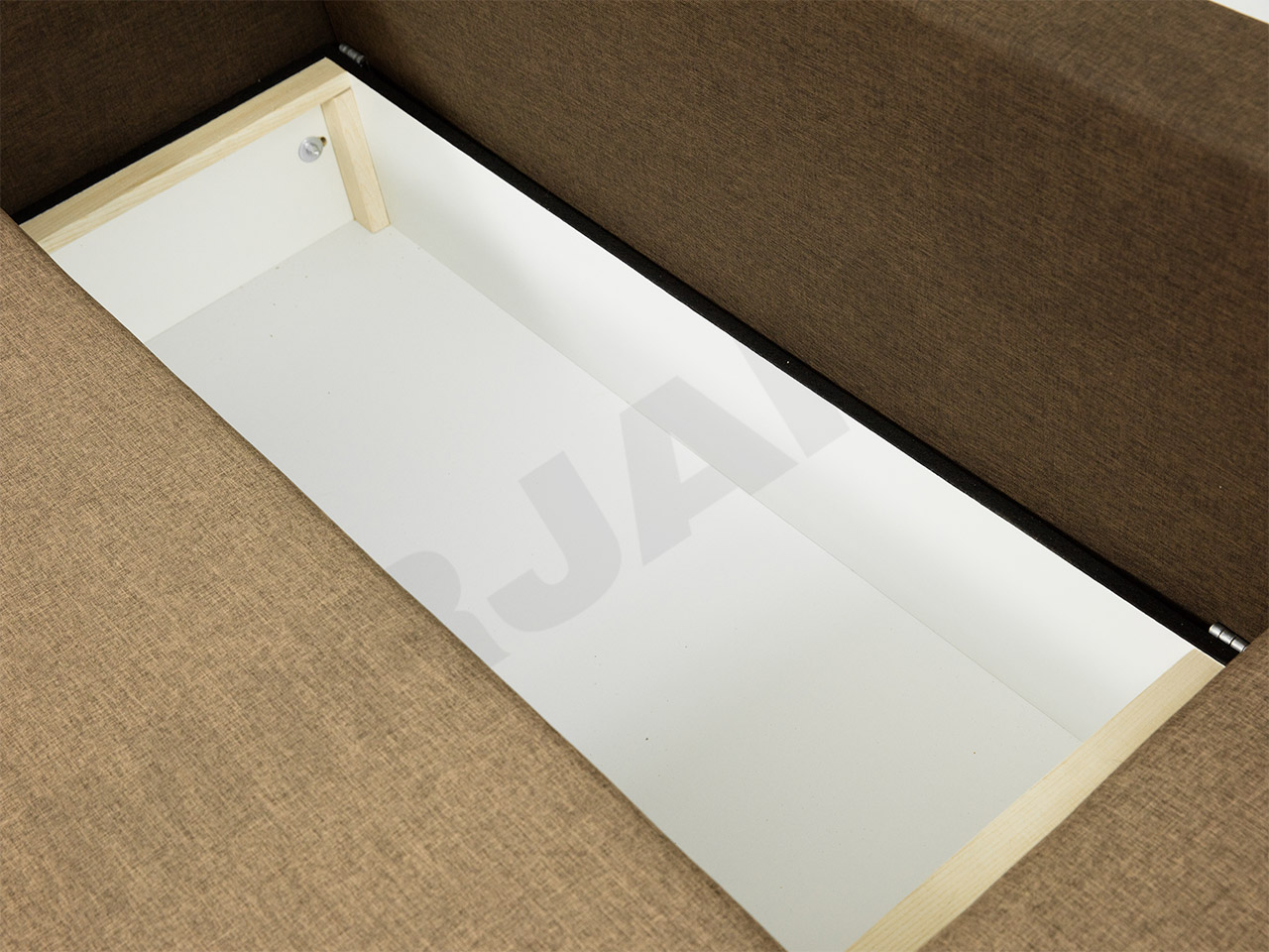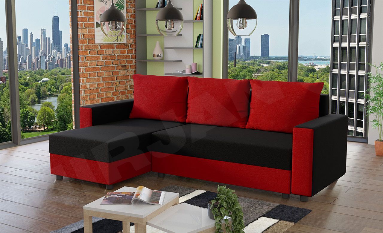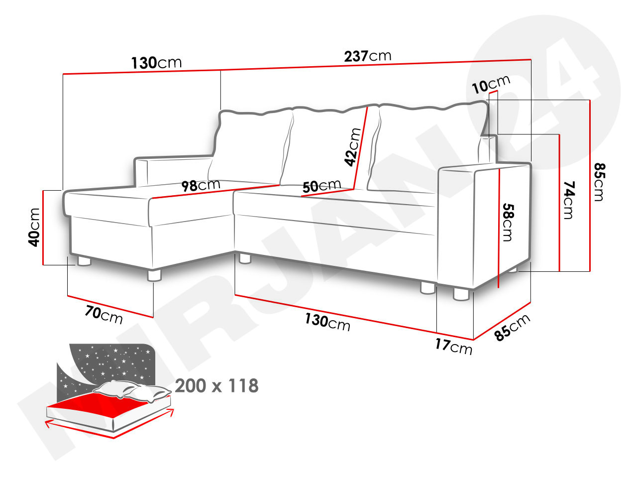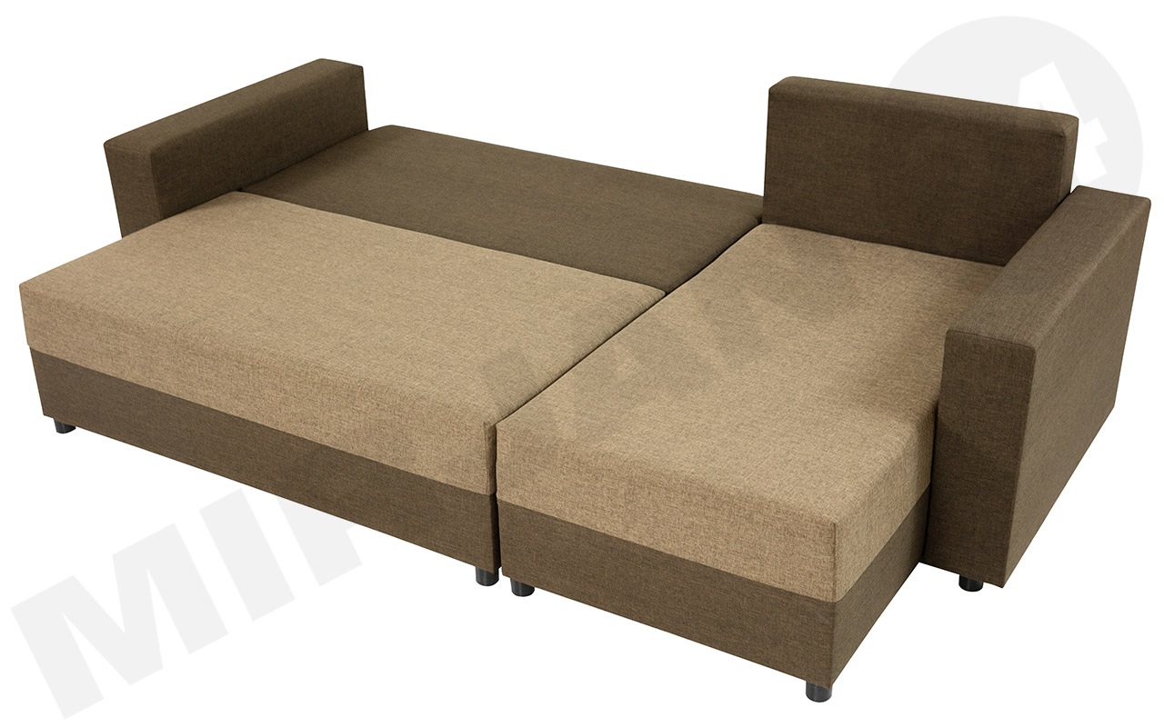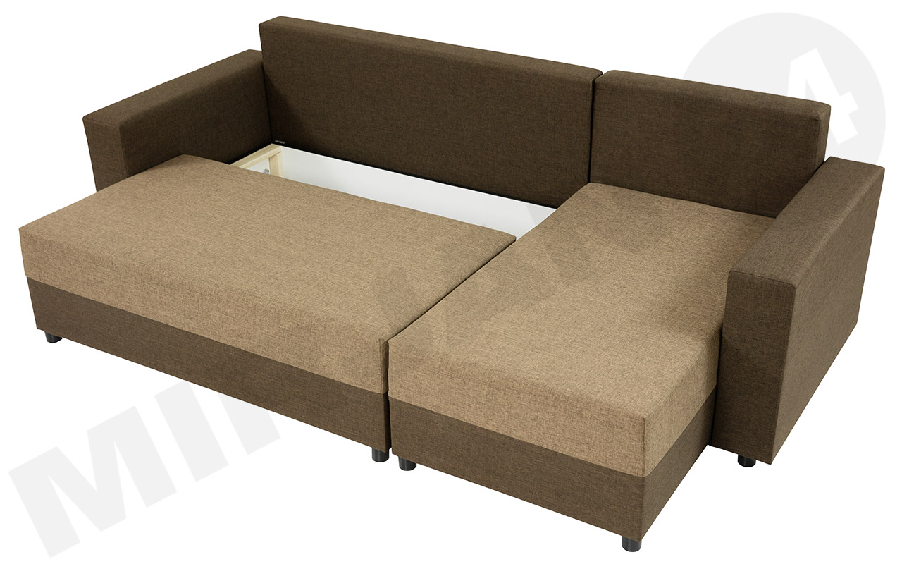 Sedacia súprava je vyrobená z dreveného rámu a drevotrieskovej dosky. Sedačka má funkciu rozloženia a fuknciu spania. Ponúka úložný priestor. Nožičky sú čierne plastové. Opierka vo forme polohovateľných vankúšov, ktoré sú na zips a v cene. Zadná časť sedačky je čalúnená.