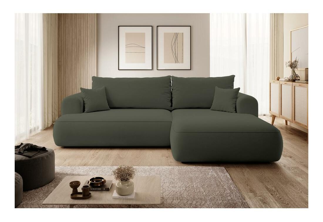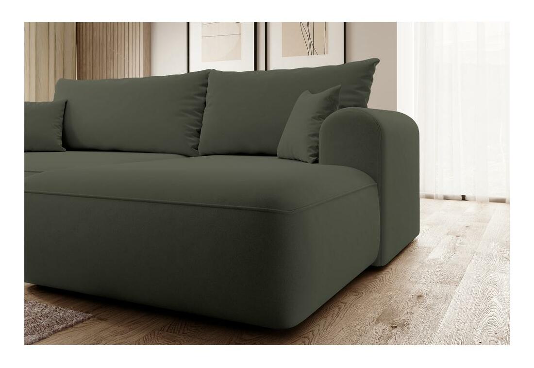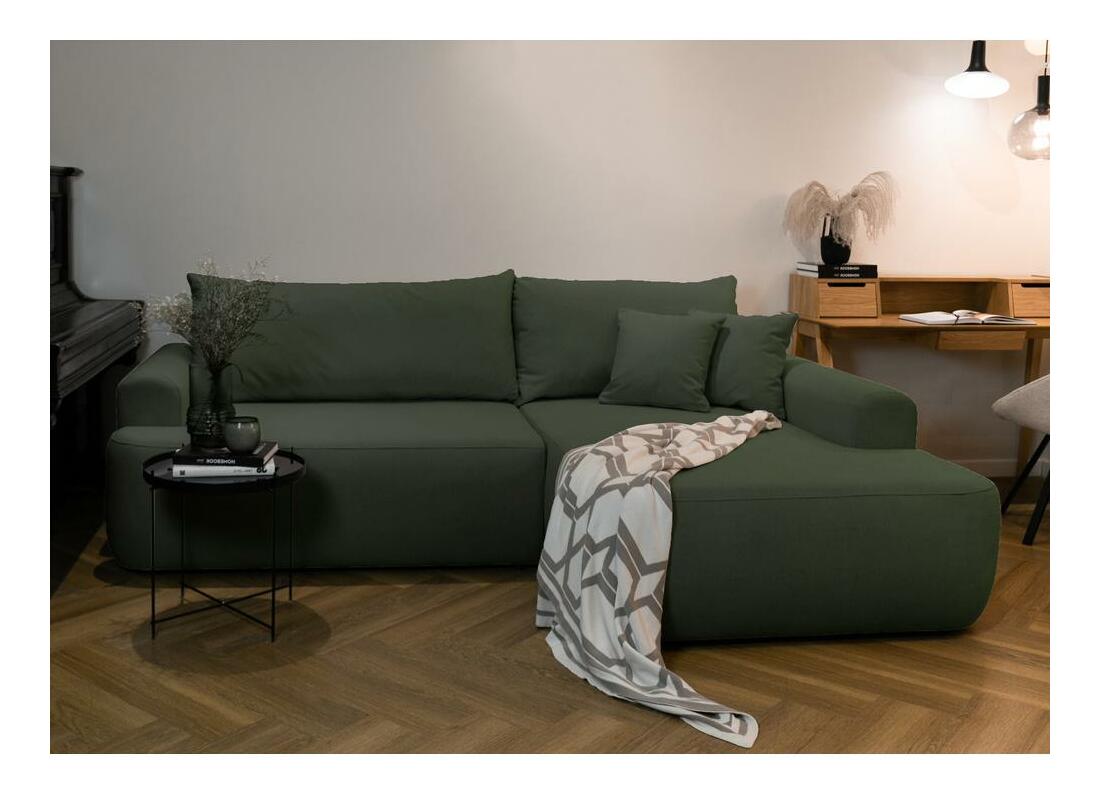 ZobraziťChcete vytvoriť módny relaxačný priestor, kde sa moderné trendy stretávajú s pohodlím? Potom naša rohová sedačka určite splní všetky vaše očakávania! Rohová pohovka s funkciou spánku je ponuka vytvorená špeciálne aj pre tých najnáročnejších užívateľov! Nábytok je vybavený sedadlom vyplneným pružinami Bonnell a pružnou polyuretánu penou, ktoré spolu s operadlom plným polyuretánovej peny a silikónových granúl jemne objíme telo užívateľa a správne podopiera citlivé body chrbtice. Takto sa ani pár hodín strávených sledovaním obľúbeného seriálu alebo popoludňajším rozhrom s kamarátkou neskončí dotieravou bolesťou. Rohová pohovka má funkciu na spanie s ľahko ovládateľným systémom DL, ktorý umožňuje rýchlu premenu z pohodlnej postele s veľkou plochou, ako aj priestranným lôžkovým oddelením, kde si môžete uložiť potrebné textílie. Detaily produktu: pravý roh, hustota peny: T35, spôsob rozkladania DL, roh je čalúnený štruktúrnou tkaninou Castel 39 olivovej farby, Castel je mäkká, hladká tkanina vyznačujúca sa vysokou odolnosťou proti treniu, oderu a žmolkovaniu, vďaka čomu je ideálne pre nábytok na každodenné použitie. Ďalšou výhodou je Easy Clean Technology - materiál sa ľahko čistí, čo umožňuje jednoduché odstránenie nečistôt s trochou vody a mäkkou handričkou.