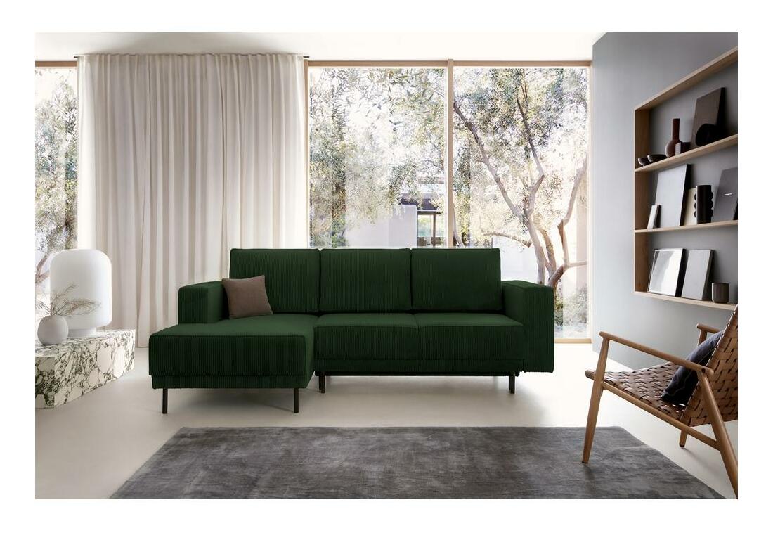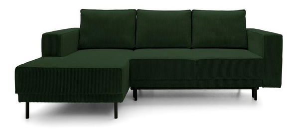 ZobraziťSnívate o štýlovej obývačke, kde si budete môcť pohodlne oddýchnuť? Rohová sedačka bude hitom Rohová sedačka je tvarom so súčasným dizajnom, ktorý dokonale zapadne do každého módneho interiéru. Jednoduchá, minimalistická forma, štíhle čierne nohy a mäkké vankúše na operadle - to všetko robí mimoriadne očarujúcim a bude ideálnym miestom na oddych po náročnom dni. Rohová sedačka je vybavená funkciou na spanie a ľahko ovládateľným DL mechanizmom, vďaka ktorému nábytok rýchlo premeníte na pohodlnú posteľ pre svojich hostí. disponuje aj priestranným úložným priestorom, do ktorého môžete uložiť náhradnú súpravu posteľnej bielizne a iného textilu Detaily produktu: nábytok je v tvare L, rohová sedačka je ľavostranná, dekoračná manšestrová látka a lemovanie dodávajú celku eleganciu, praktické podrúčky. vám umožní pohodlne si oprieť ruky, nábytok je čalúnený látkou ;Poso 14 v tmavozelenej farbe Poso je látka v štýle manšestru. Povrch pokrytý hrubými pruhmi je príjemný na dotyk. Vyznačuje sa vysokou odolnosťou proti oderu, treniu a svetlu.