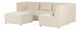 Vytvorte si štýlovú obývaciu izbu s touto modernou pohovkou. Menčestrové čalúnenie je mäkké na dotyk a vyznačuje sa nápadnou vrúbkovanou textúrou, vďaka ktorej vyzerá elegantne. Stabilitu pohovky zaručujú nohy vyrobené zo syntetického materiálu. Rohová pohovka sa skladá zo 4 modulov, ktoré možno spojiť do jedného celku alebo použiť samostatne a vytvoriť iné usporiadanie. Súčasťou pohovky je aj viacúčelová taburetka, ktorá môže poslúžiť ako miesto na sedenie, podnožka alebo stolík. Dodatočné vankúše majú snímateľné poťahy pre jednoduchšie čistenie.