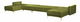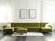 Modulárna sedacia súprava v tvare U s taburetom je ideálnym a skutočne univerzálnym kusom nábytku do vašej obývacej izby. Súprava pozostáva z 3-miestnej pohovky, 1-miestnej sedacej časti a dvoch bočných ležadiel a vďaka nastaviteľnému operadlu ju možno jednoducho zmeniť na pohodlné lôžko. Táto súprava je celá čalúnená vysokokvalitnou a štýlovou zelenou zamatovou látkou s elegantným prešívaním a ponúka funkčnosť i nadčasový štýl. Celá zostava je stabilná vďaka kovovým nohám.