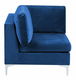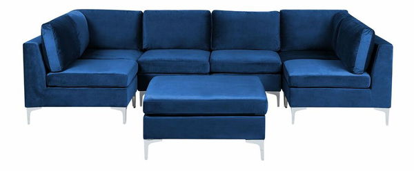 Zaobstarajte si modulárnu pohovku, ktorá vám umožní prispôsobiť si usporiadanie sedenia kedykoľvek budete chcieť. Kombináciou šiestich dielov vytvoríte zostavu, ktorá bude vyhovovať vášmu obývaciemu priestoru. Pomocou dvoch rohových častí môžete vytvoriť veľkú sedaciu súpravu v tvare U. Taburet možno umiestniť na ľavú alebo pravú stranu pohovky a rozšíriť sedaciu plochu alebo ho použiť ako opierku pod nohy. Každý kus zostavy má hrubé vankúše s luxusným zamatovým čalúnením. V kombinácii s lesklými striebornými kovovými nohami, ktoré jej dodávajú čistý a moderný vzhľad, sa táto pohovka stane nádherným stredobodom miestnosti.