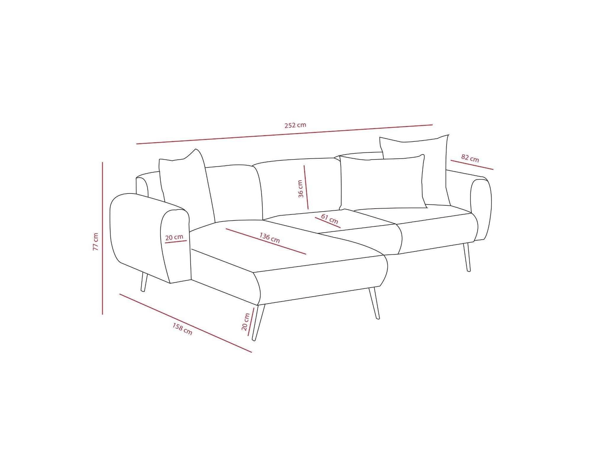 ZobraziťTento produkt je vyrobený z tkaniny a zo 100% bukového dreva. Jeho rozmery sú šírka 252 cm, výška 77 cm a hĺbka 82 cm, čo z neho robí ideálny doplnok pre vašu domácnosť.