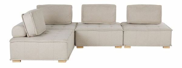 Vďaka tejto modulárnej pohovke bude vaša obývacia izba ešte pohodlnejšia. Táto pohovka je čalúnená látkou, ktorá je nenáročná na údržbu. Nohy sú vyrobené z dreva a navyše sú vybavené plstenými podložkami pre lepšiu stabilitu. Nadčasový dizajn doplnený gombíkmi a klasickým lemovaním ponúka tradičný vzhľad, ktorý sa dokonale hodí do interiérov v minimalistickom a škandinávskom štýle. Operadlá sú vybavené hrubými vystuženými vankúšmi so snímateľnými poťahmi, za ktorými sa ukrývajú menšie vankúše, ktoré sú ideálne na leňošenie. Každý modul je vybavený konektormi.