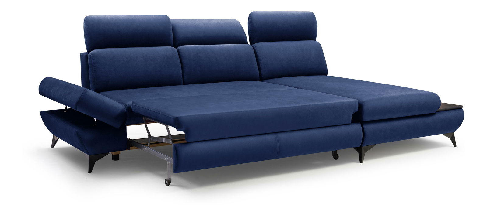 ZobraziťModerná rohová sedacia súprava s konštrukciou z dreva a drevotriesky ponúka pevnosť a trvácnosť. Sedák je vyrobený z PUR peny a pružín, čo zabezpečuje pohodlné sedenie. Sedačka je rozkladacia s plochou na spanie 125 x 216 cm. Výška sedenia je 45 cm, hĺbka sedenia 60 cm a výška podrúčky je max. 59 cm. Sedačka disponuje úložným priestorom a chrbát je potiahnutý rovnakou látkou, čo zaručuje jednotný vzhľad. Nastaviteľné opierky hlavy a podrúčky zvyšujú komfort. Kovové nožičky s výškou 12 cm dodávajú sedačke moderný vzhľad a stabilitu. Typ rozkladania je DL automat, čo umožňuje jednoduché a rýchle rozkladanie.