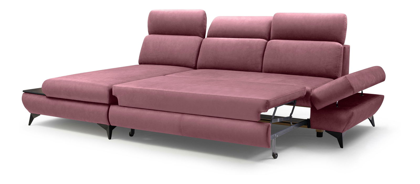 ZobraziťModerná rohová sedacia súprava s konštrukciou z dreva a drevotriesky ponúka pevnosť a trvácnosť. Sedák je vyrobený z PUR peny a pružín, čo zabezpečuje pohodlné sedenie. Sedačka je rozkladacia s plochou na spanie 125 x 216 cm. Výška sedenia je 45 cm, hĺbka sedenia 60 cm a výška podrúčky je max. 59 cm. Sedačka disponuje úložným priestorom a chrbát je potiahnutý rovnakou látkou, čo zaručuje jednotný vzhľad. Nastaviteľné opierky hlavy a podrúčky zvyšujú komfort. Kovové nožičky s výškou 12 cm dodávajú sedačke moderný vzhľad a stabilitu. Typ rozkladania je DL automat, čo umožňuje jednoduché a rýchle rozkladanie.