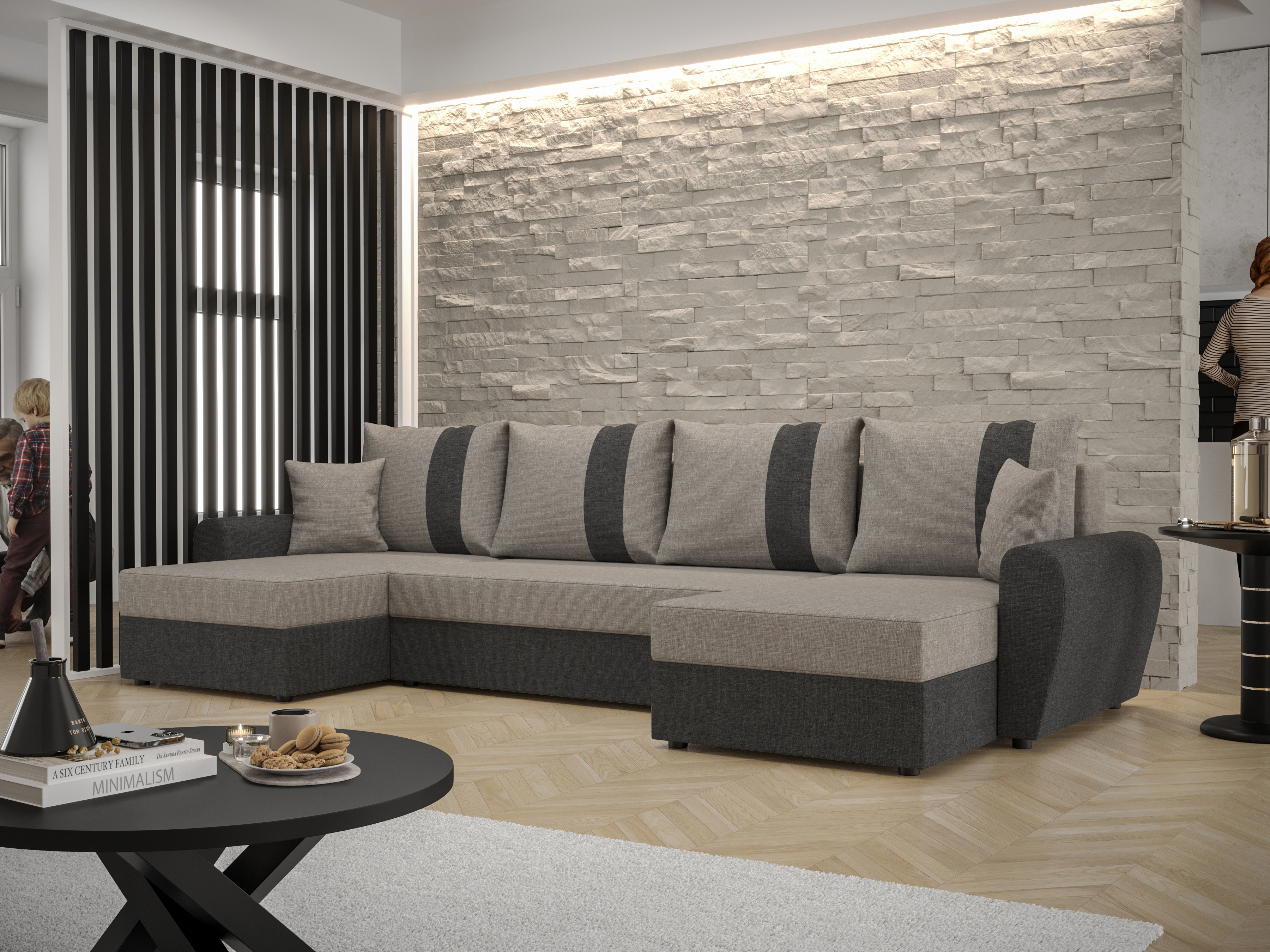 Rohová sedacia súprava U - Daven U v kombinácii hnedej a sivej farby prináša do vášho obývacieho priestoru nielen štýlový vzhľad, ale aj maximálny komfort. S rozmermi 301 cm na šírku a 140 cm na hĺbku poskytuje dostatok miesta pre rodinné posedenia či návštevy priateľov.