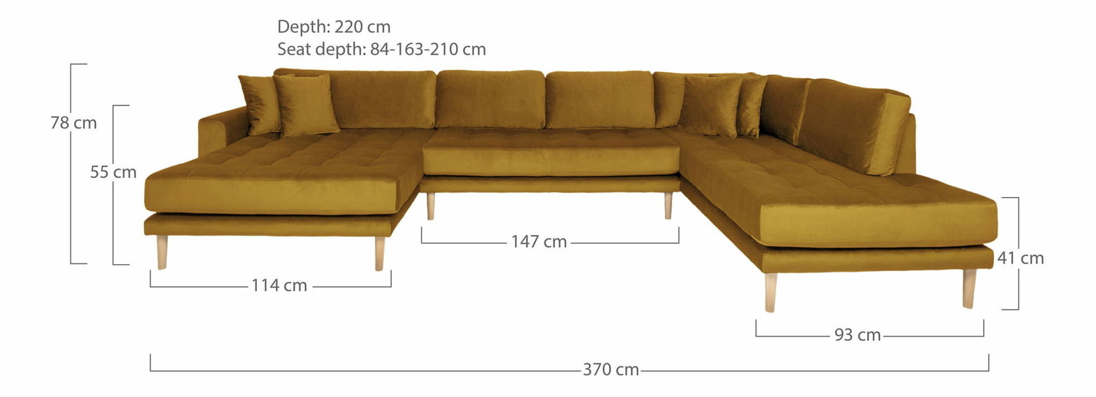Rohová sedacia súprava v tvare U (L) Lvaveriaora U (horčicová)