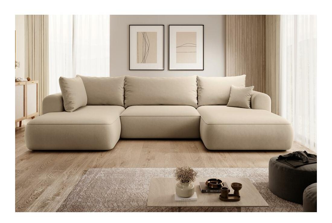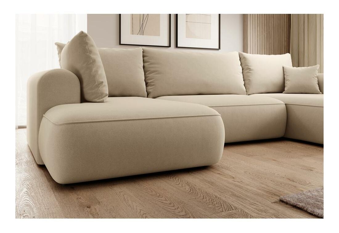 ZobraziťChcete vytvoriť módny relaxačný priestor, kde sa moderné trendy stretávajú s pohodlím? Potom naša rohová sedacia súprava v tvare U určite splní všetky vaše očakávania Rohová sedacia súprava v tvare U je kus nábytku, ktorý dokonale zapadá do súčasných trendov interiérového dizajnu. Vďaka jednoduchej štruktúre a zaobleným tvarom sa perfektne hodí do väčšiny aranžmánov a svojim vzhľadom a pohodlím poteší vašich priateľov a blízkych. Vďaka tomu, že v sedadle sú pružiny Bonnell a v operadle vlnová pružina, je tento kus nábytku mimoriadne pohodlný a určite sa vám nebude chcieť vstať. sa navyše vďaka funkcii DL skladania dá ľahko premeniť na pohodlnú posteľ, v ktorej ľahko prespíte cez noc svojich blízkych. Všetok textil môžete uložiť do úložný priestora na posteľnú bielizeň, ktorý je štandardom pre rohovú sedačku Ak sa vám páči dizajn rohovej sedačky , určite si pozrite aj ďalší nábytok z tejto kolekcie: Rohová sedačka v tvare U, ľavý nábytok (dlhší otoman je umiestnený na ľavej strane), voľne stojaci model, t.j. s čalúneným operadlom, funkcia na spanie typu DL umožňuje veľmi rýchle rozloženie rohovej sedačky, štandardne úložný priestor na lôžkoviny, čierne nohy, nábytok čalúnený látkou Castel 15 v béžovej farbe, Castel je mäkká, hladká látka vyznačujúca sa vysokou odolnosťou proti treniu, oderu a žmolkovaniu, vďaka čomu je ideálna pre každodenný nábytok. Ďalšou výhodou je Easy Clean Technology - materiál sa ľahko čistí, čo umožňuje jednoduché odstránenie nečistôt s trochou vody a mäkkou handričkou.