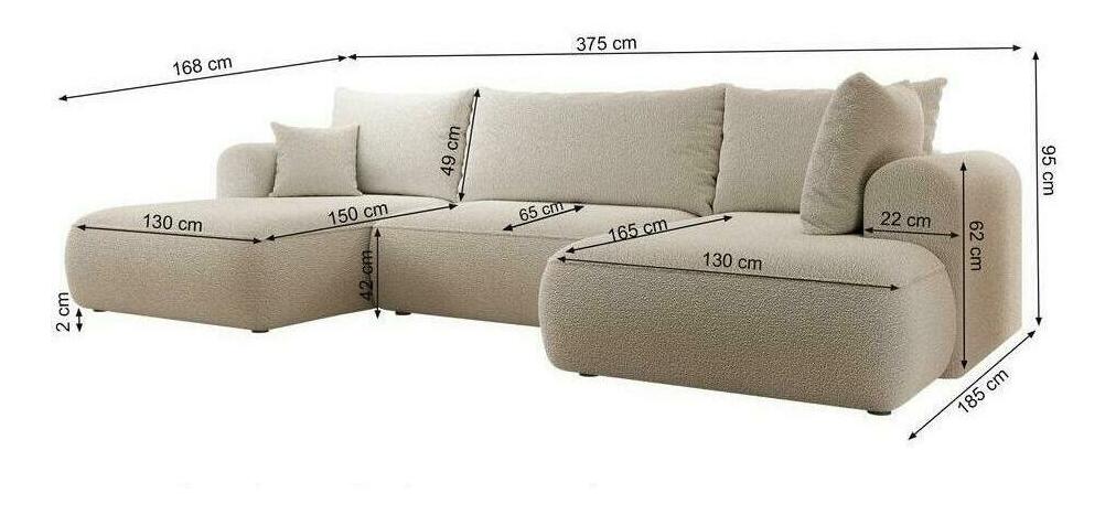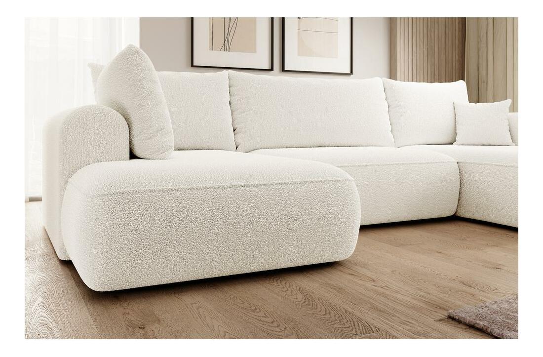ZobraziťChcete vytvoriť módny relaxačný priestor, kde sa moderné trendy stretávajú s pohodlím? Potom naša rohová sedacia súprava v tvare U určite splní všetky vaše očakávania Rohová sedacia súprava v tvare U je kus nábytku, ktorý dokonale zapadá do súčasných trendov interiérového dizajnu. Vďaka jednoduchej štruktúre a zaobleným tvarom sa perfektne hodí do väčšiny aranžmánov a svojim vzhľadom a pohodlím poteší vašich priateľov a blízkych. Vďaka tomu, že v sedadle sú pružiny Bonnell a v operadle vlnová pružina, je tento kus nábytku mimoriadne pohodlný a určite sa vám nebude chcieť vstať. sa navyše vďaka funkcii DL skladania dá ľahko premeniť na pohodlnú posteľ, v ktorej ľahko prespíte cez noc svojich blízkych. Všetok textil môžete uložiť do úložný priestora na posteľnú bielizeň, ktorý je štandardom pre rohovú sedačku Ak sa vám páči dizajn rohovej sedačky , určite si pozrite aj ďalší nábytok z tejto kolekcie: Rohová sedačka v tvare U, ľavý nábytok (dlhší otoman je umiestnený na ľavej strane), voľne stojaci model, t.j. s čalúneným operadlom, funkcia na spanie typu DL umožňuje veľmi rýchle rozloženie rohovej sedačky, štandardne úložný priestor na lôžkoviny, čierne nohy, Nábytok čalúnený látkou Abriamo 04 krémovej farby, Abriamo je mäkká, na dotyk príjemná boucle látka. Tento materiál má veľmi pevnú a krútenú väzbu. Abriamo je odolné voči treniu, oderu a odlupovaniu.