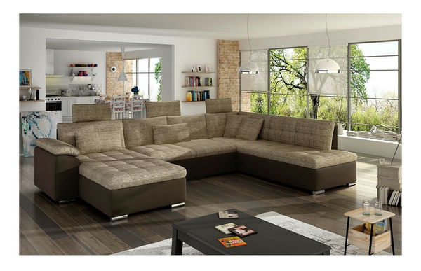 Rozkladacia sedacia súprava Verity s úložným priestorom je praktický a funkčný model, ktorý sa bude perfektne hodiť do veľkej a priestrannej miestnosti. Rohová sedačka do obývačky má módnu podobu, podobnú písmenu U. Poskytuje veľa priestoru pre vašu rodinu alebo hostí. Veľkosť je len jednou z mnohých výhod tohto modelu. Ďalším je široký gauč, ktorý vám poskytne večernú relaxáciu v ľahu alebo v ľahu. Vynechať nemožno ani pohodlné opierky hlavy a funkciu spánku. V rozloženom stave ponúka rohová sedačka pohodlné miesto na spanie pre dve osoby. A v boxe s nábytkom budete mať náhradnú sadu posteľnej bielizne.