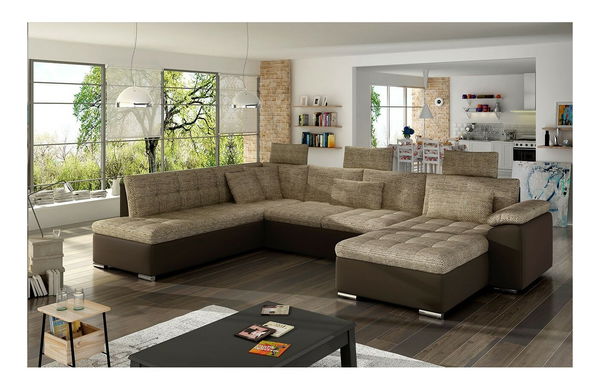 Rozkladacia sedacia súprava Verity s úložným priestorom je praktický a funkčný model, ktorý sa bude perfektne hodiť do veľkej a priestrannej miestnosti. Rohová sedačka do obývačky má módnu podobu, podobnú písmenu U. Poskytuje veľa priestoru pre vašu rodinu alebo hostí. Veľkosť je len jednou z mnohých výhod tohto modelu. Ďalším je široký gauč, ktorý vám poskytne večernú relaxáciu v ľahu alebo v ľahu. Vynechať nemožno ani pohodlné opierky hlavy a funkciu spánku. V rozloženom stave ponúka rohová sedačka pohodlné miesto na spanie pre dve osoby. A v boxe s nábytkom budete mať náhradnú sadu posteľnej bielizne.