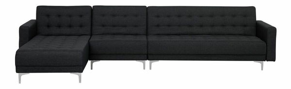 Táto veľká rohová pohovka je ideálnym kusom nábytku do vašej obývacej izby. Pozostáva z trojmiestnej a jednomiestnej pohovky a ležadla. Vďaka nastaviteľnému operadlu ju možno jednoducho rozložiť na pohodlnú posteľ pre dve osoby. Ležadlo môže byť umiestnené na pravej alebo ľavej strane. Táto pohovka je celá čalúnená vysokokvalitnou a štýlovou grafitovosivou látkou s elegantným prešívaním a ponúka funkčnosť i nadčasový štýl. Je dobrou voľbou do moderných, ale aj tradične zariadených interiérov. Stabilitu pohovky zaručujú kovové nohy.
